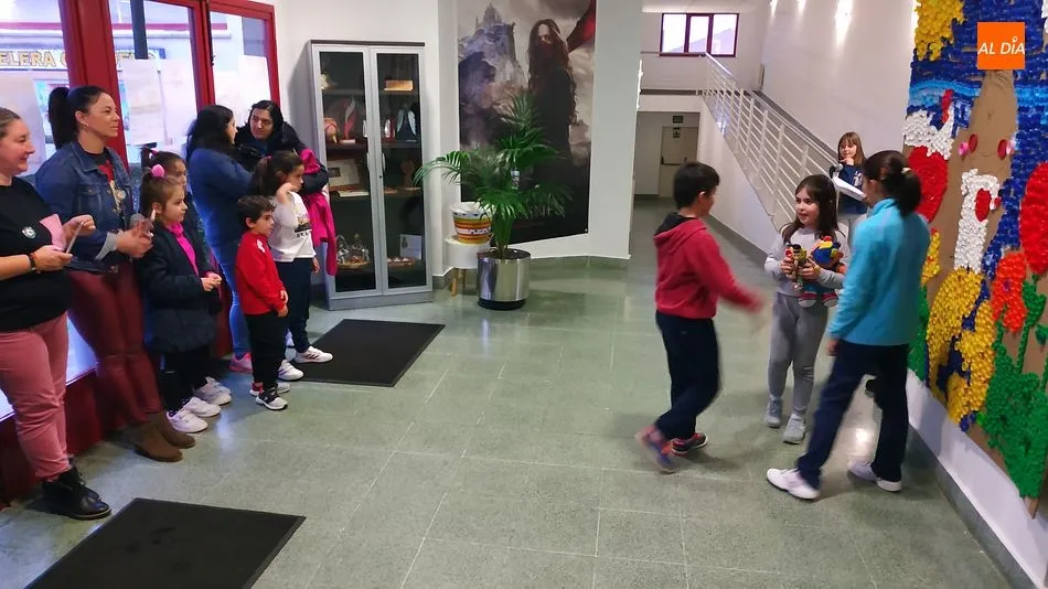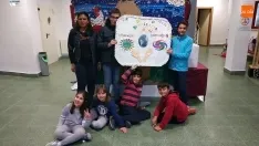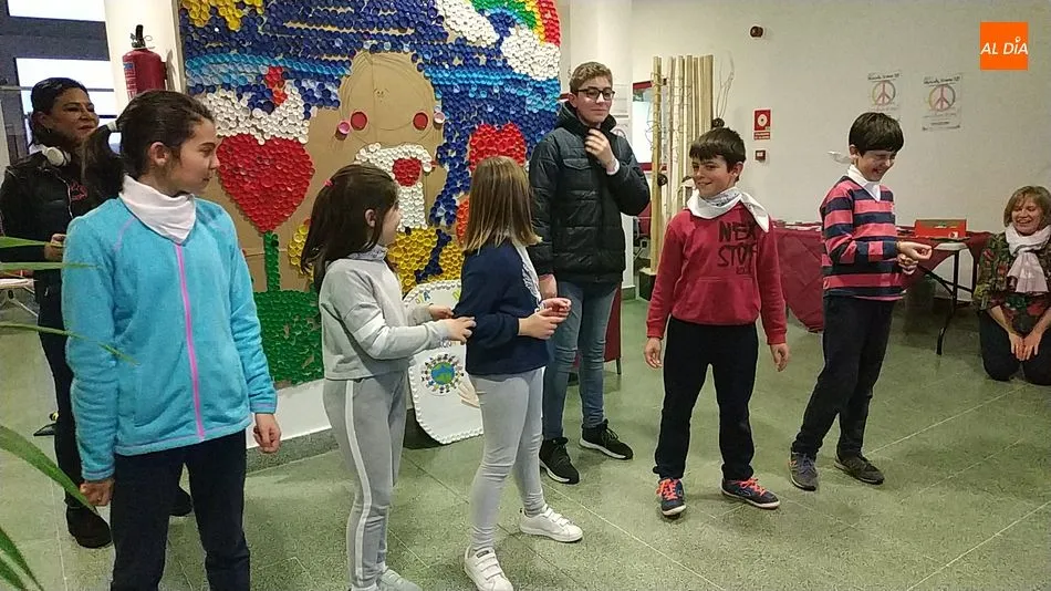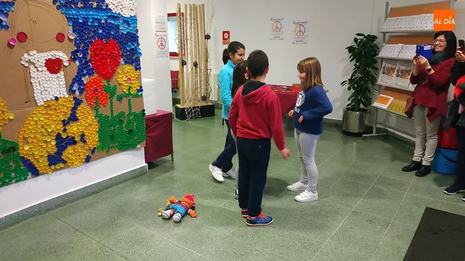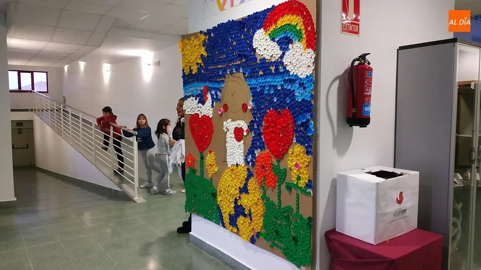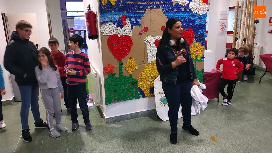 cibidor del edificio escrita especialmente para la ocasión. A continuación, el joven Pedro Basilio Julián ha interpretado un rap, compuesto también ex profeso, acompañado de sus compañeros bailando. Todo ello frente al mural que durante la última semana se ha estado elaborando en el lugar con tapones de colores.
