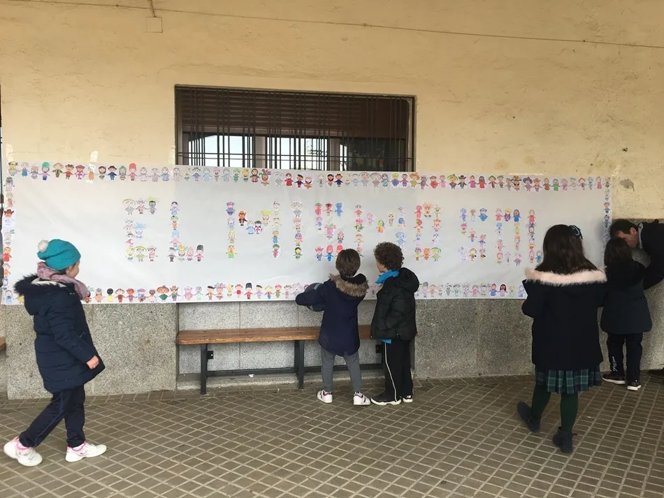 Se han coloreado dibujos de culturas diferentes con los que han hecho un gran mural y colocados en círculos, pequeños y mayores, han bailado la canción ?bajo el mismo sol?.