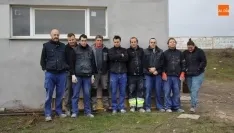 En este caso, la obra consiste en la creación de vestuarios bajo las gradas del nuevo campo de fútbol, trabajo para el que disponen de seis meses. Como señala su coordinador, Isidoro Sánchez, ?nuestro objetivo es dejar la obra terminada, no sé si lo conseguiremos. Ya tenemos casi todo alicatado en lo que son los baños. Vamos a traer una máquina para empezar a dar yeso, y lo último que tenemos que hacer es salir colocando el suelo?, señalaba.