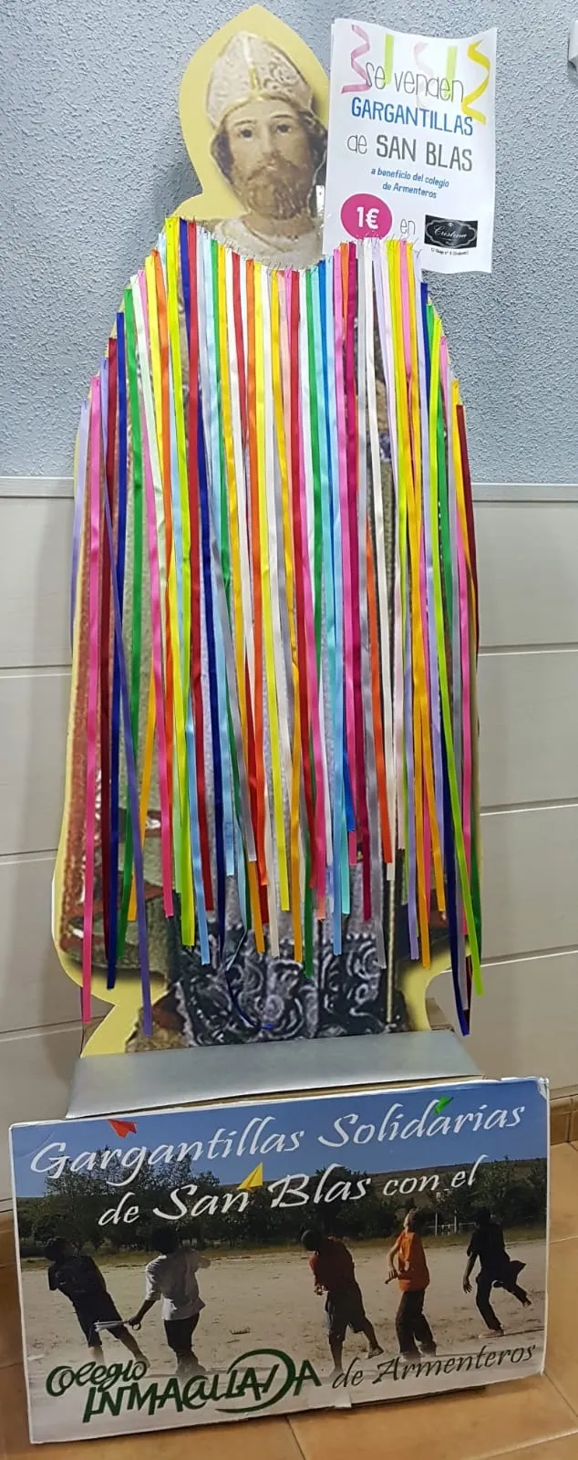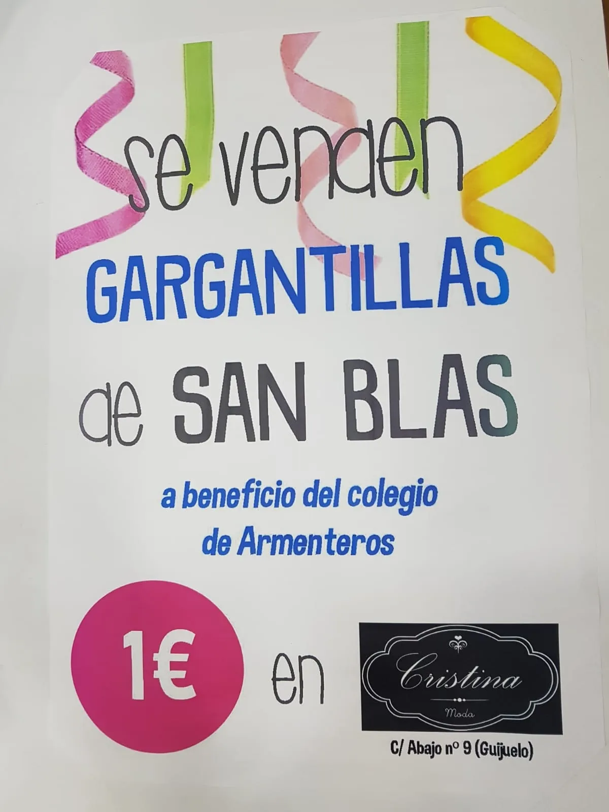 El centro cultural de Guijuelo se suma un año más a la iniciativa solidaria de las gargantillas de San Blas. Estas cintas de colores, bendecidas por el párroco de Fuenterroble, Blas Rodríguez están