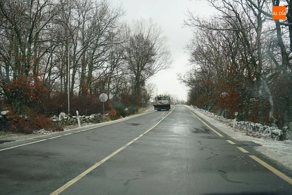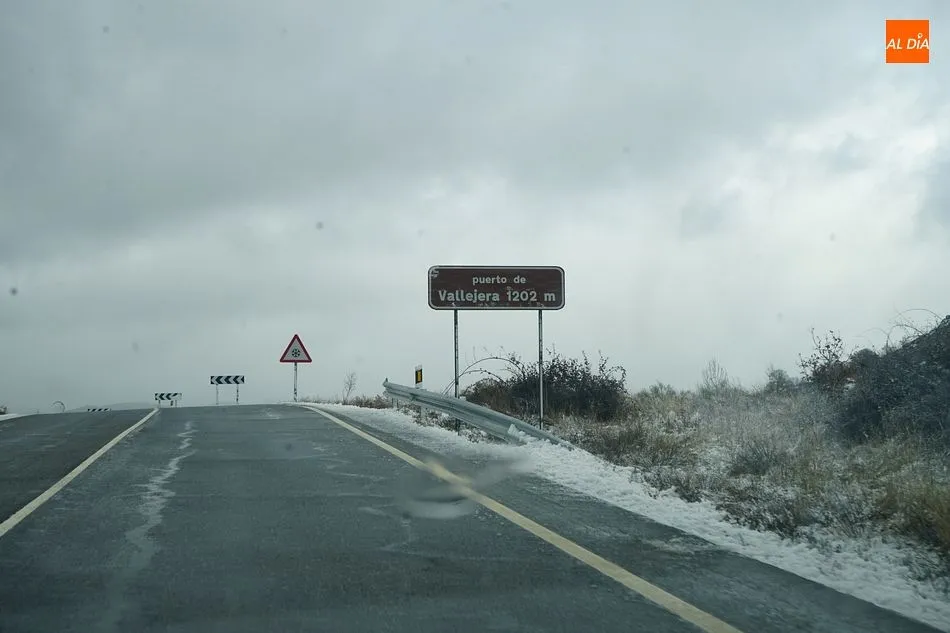 La Sierra de Béjar ya está cubierta de nieve. La A-66 a su paso por el Puerto de Vallejera está totalmente limpia y libre para circular