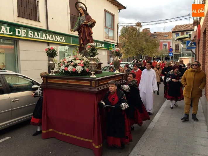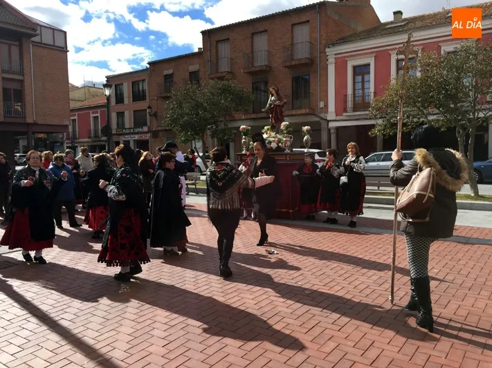 La sobriedad llegaba a la una de la tarde, con la celebración de una eucaristía en honor a la Santa, tras lo que la imagen de su patrona salía del templo portada por las propias aguederas, entre un buen ambiente festivo, amenizado en todo momento por la Dulzaina Alborada. Bailes y vítores protagonizaban el recorrido que, tras llegar a su fin, daba paso a la comida de hermandad en el restaurante Las Cabañas, que se prolongaba hasta bien entrada la tarde.