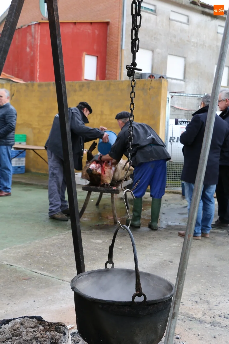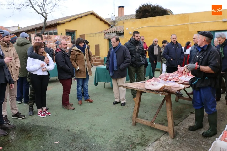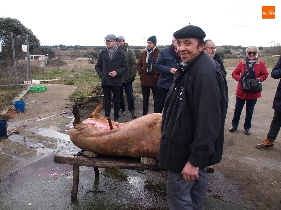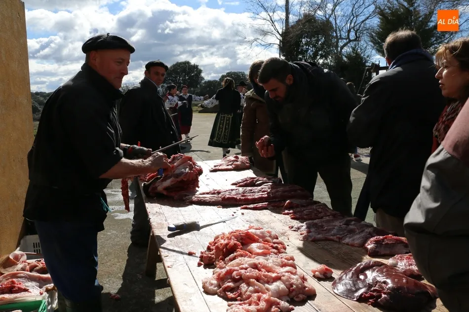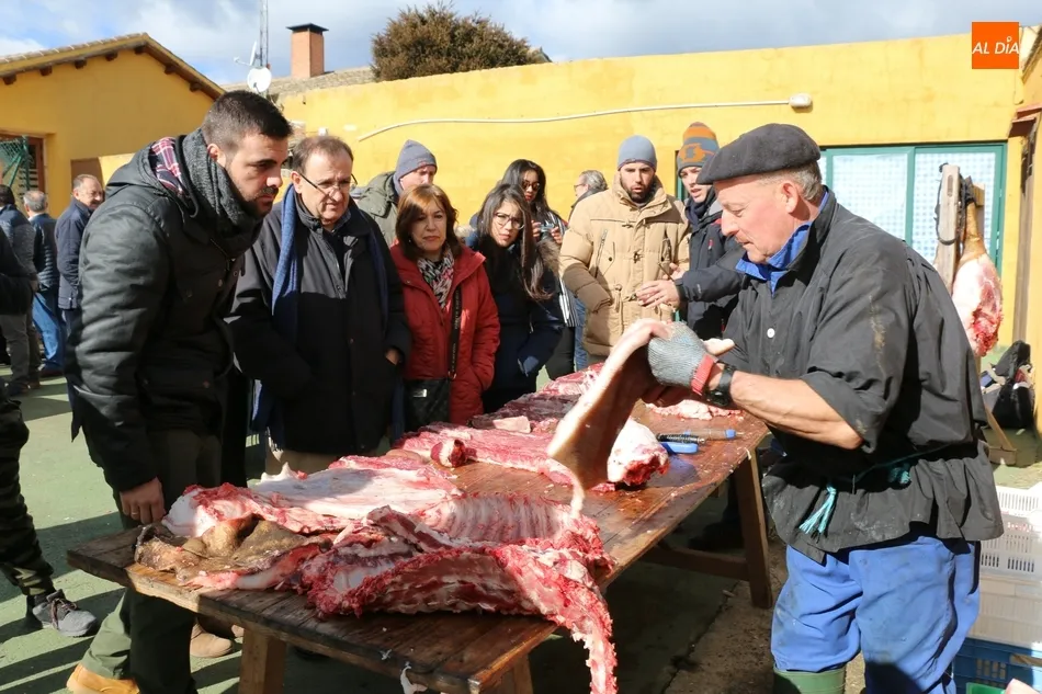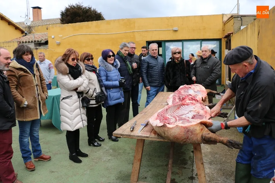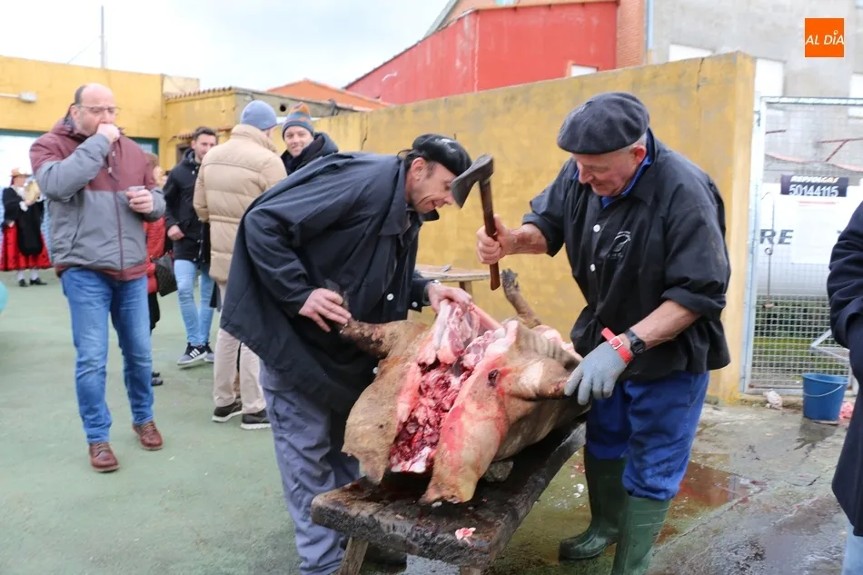 Tras el sacrificio del cochino, de 16 arrobas, tenía lugar su chamuscado con ramos de piornos, momento que daría paso a la limpieza del tocino antes de su posterior despiece. Con las vísceras fuera, llegaba el momento de abrir la canal y extraer el espinazo, para proseguir con costillas, lomos, paletas y jamones. Una a una fueron apareciendo piezas hasta hace muy poco desconocidas para el gran público: la cruceta, la bola, el secreto o el lagarto, todas ellas muy apreciadas, proceso que el maestro chacinero iba narrando a un público muy interesado en conocer el despiece del gorrino.