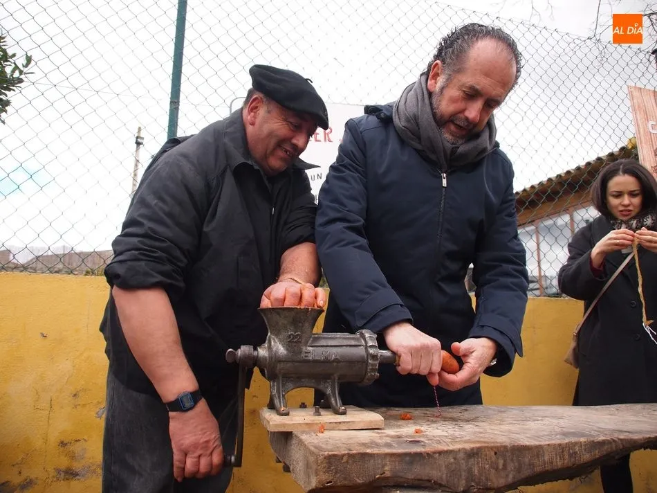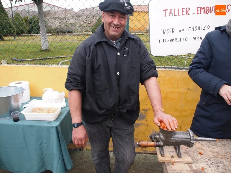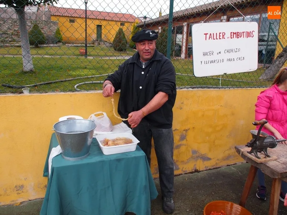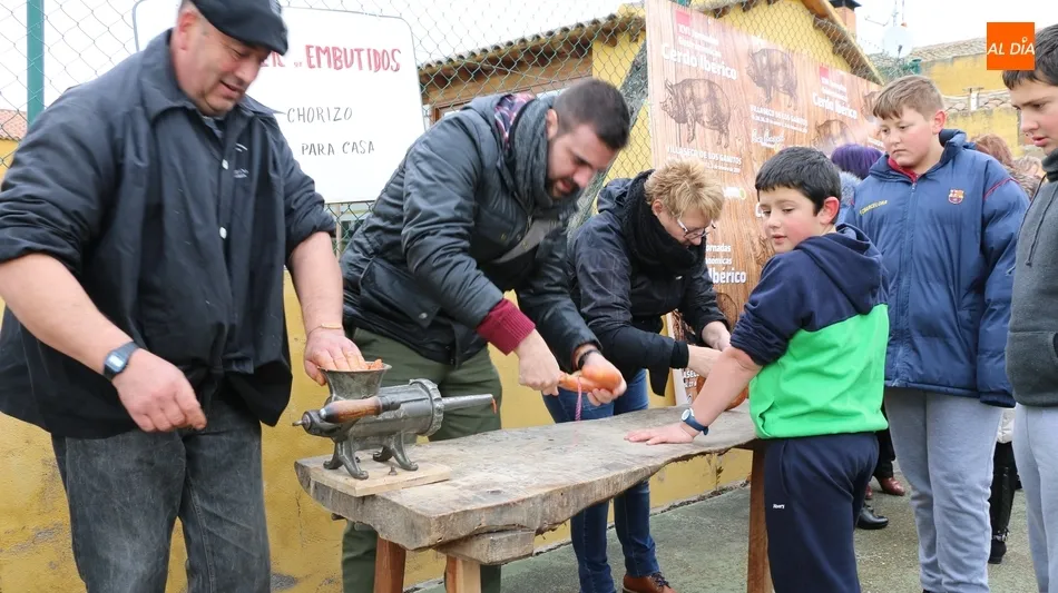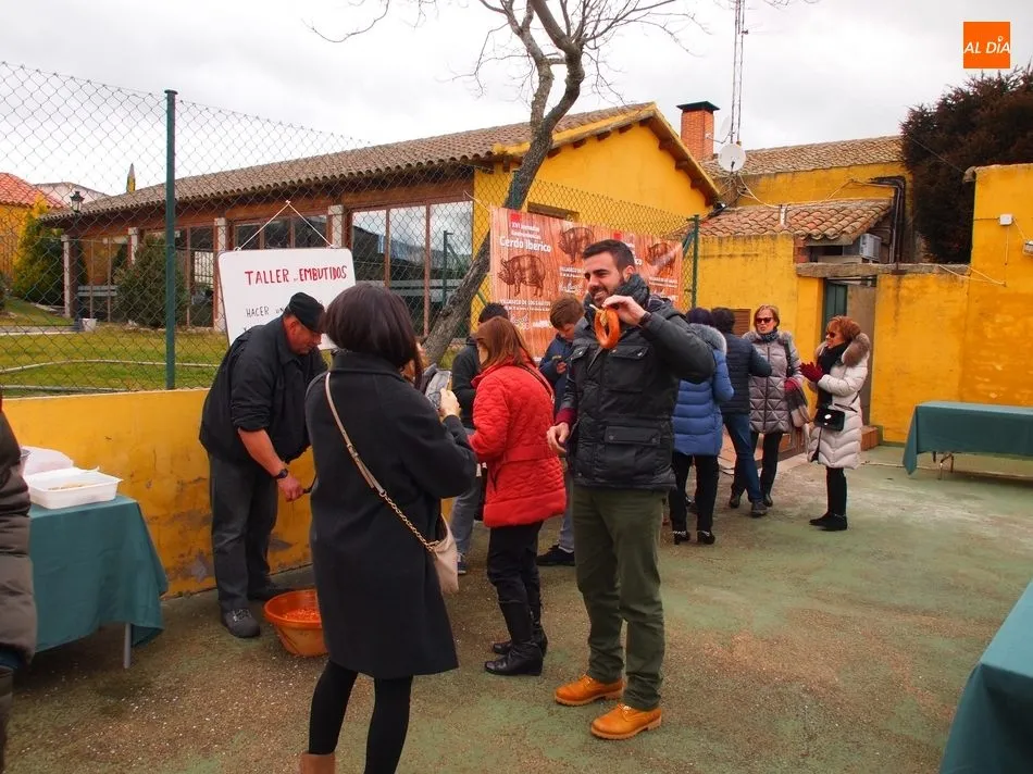 Entre tanto, el público asistente pudo degustar el vino de la DO Ribera de Duero, Tinto Roa Crianza, con costilla asada o chichas, mientras los más pequeños conocían su primer chorizo en la máquina de embuchar.