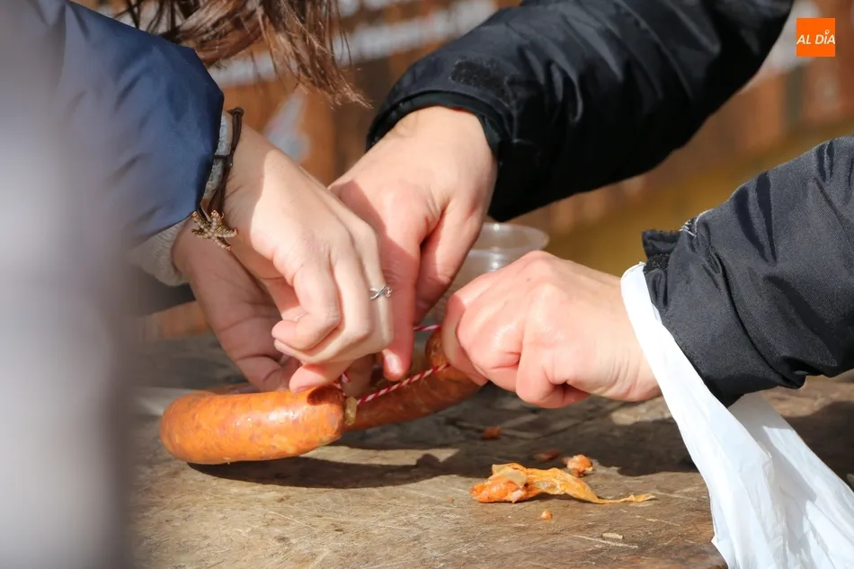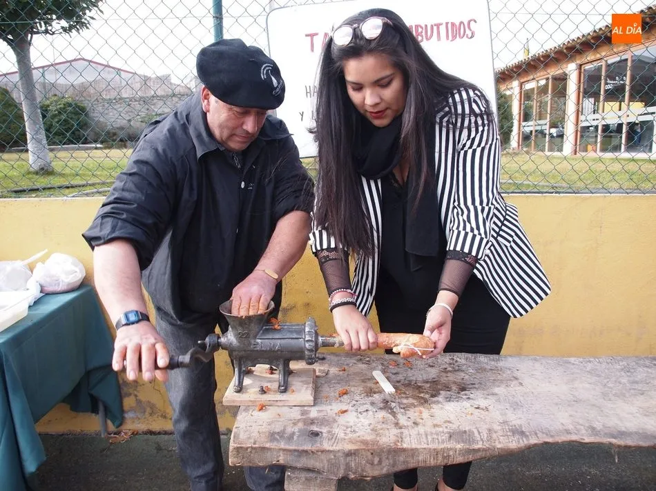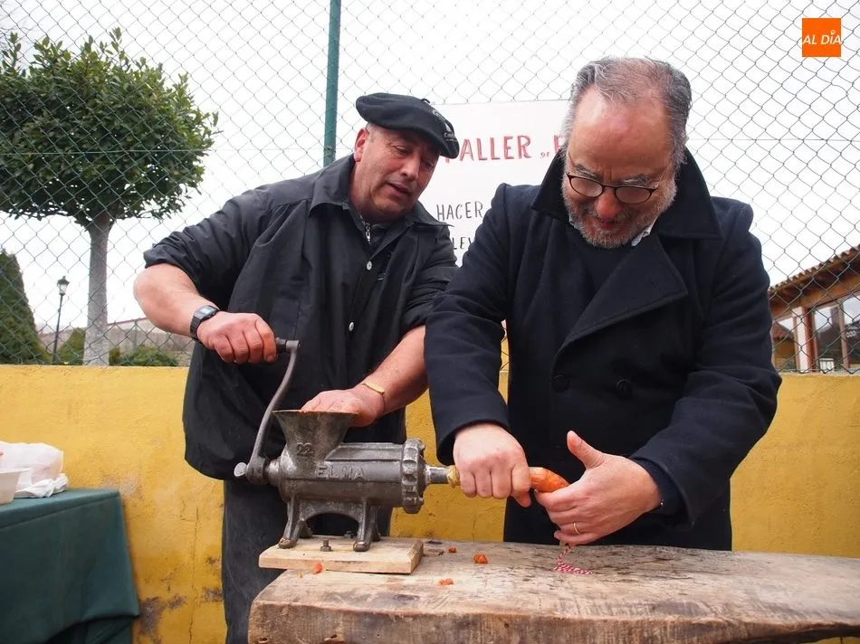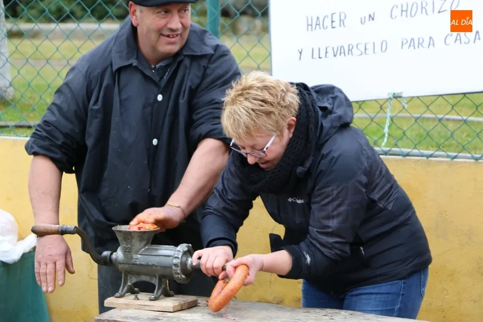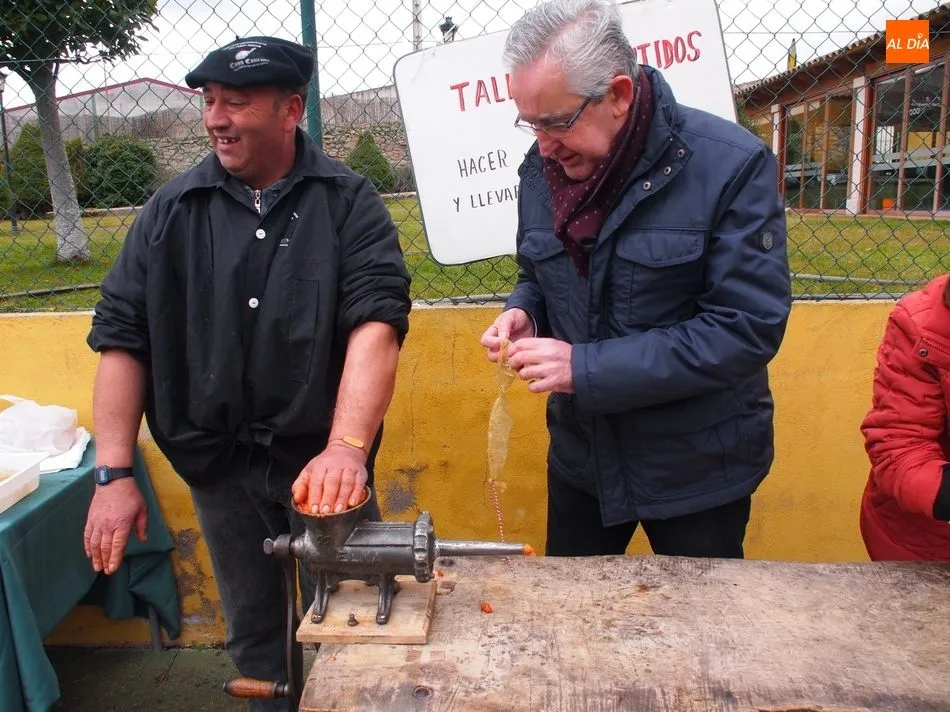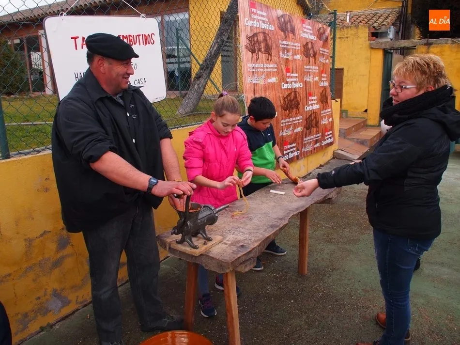 Entre tanto, el público asistente pudo degustar el vino de la DO Ribera de Duero, Tinto Roa Crianza, con costilla asada o chichas, mientras los más pequeños conocían su primer chorizo en la máquina de embuchar.