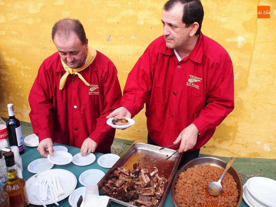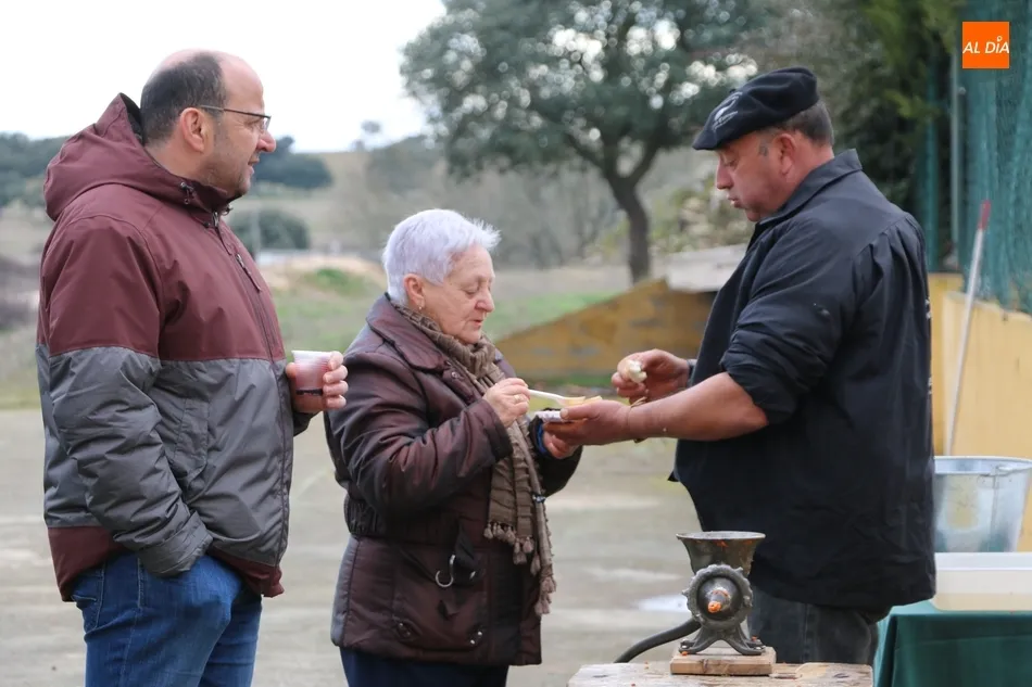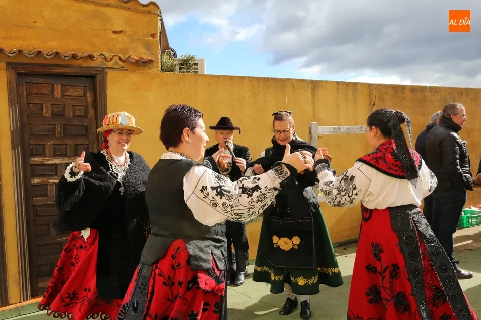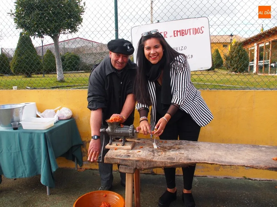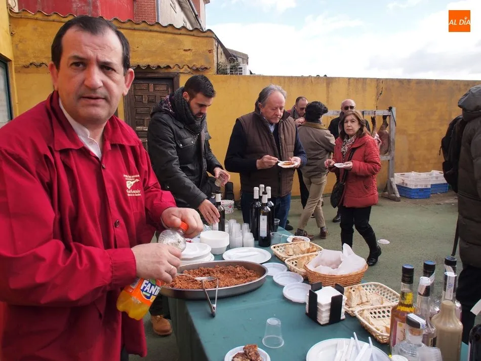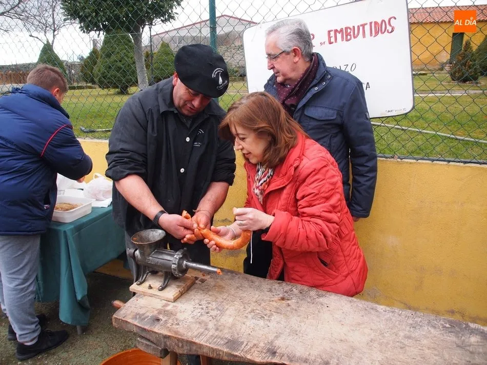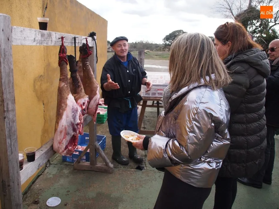 Antes de que María Fuentes se sentase a la excelente mesa de Casa Conrado y recibiera la placa conmemorativa de su nombramiento como Matancera de Honor, el arte estaba fraguándose en la cocina de María Jesús Nieto y, al mismo tiempo, en el patio exterior de Casa Conrado, el maestro chacinero de La Encina, Ángel García, y el grupo de folclore Organza, de Vitigudino, mostraban al público uno de los actos de mayor tradición charra.