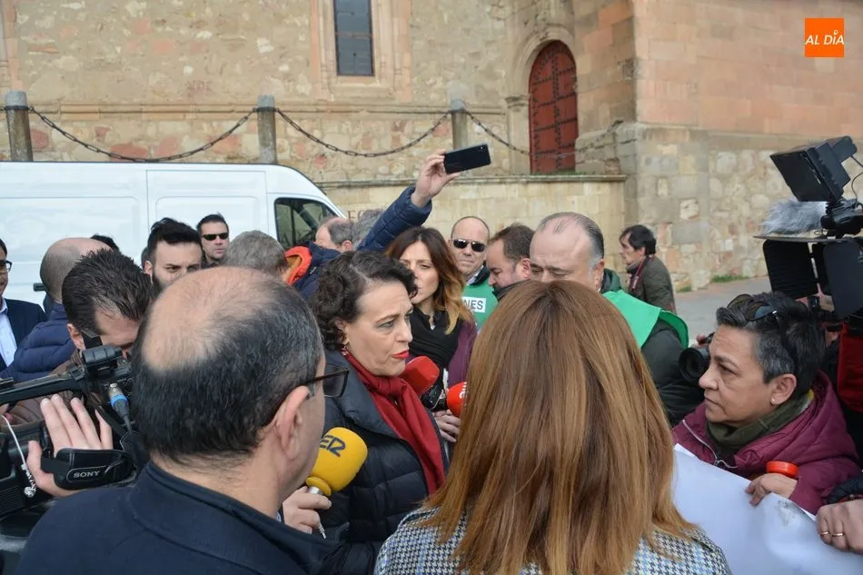 La ministra de Trabajo, Magdalena Valerio, apoyó al candidato de su partido a la alcaldía a través de las políticas sociales: "Vuelvo a Salamanca para apoyar a nuestro querido José Luis Mateos como futuro alcalde. A los dos nos unen nuestras inquietudes sociales y políticas desde muy jóvenes. Tienes un reto enorme por delante pero muy claro qué necesita la ciudad". La ministra aprovechó la ocasión para hablar de política nacional, como la gestión tributaria: "En este país tiene que haber una fiscalidad justa: que pague más quien más tiene. Redistribución de la riqueza, lucha contra la economía sumergida y el fraude laboral. No vale llenarse la boca de patriotismo y no cumplir lo anterior". También quiso diferenciar su partido ante los rivales: "Tenemos una metodología de trabajo muy distinta frente al ordeno y mando del PP. Somos dialogantes y trabajamos en coalición con la sociedad civil y los agentes sociales y económicos. Tenemos respeto y sentido de la responsabilidad".