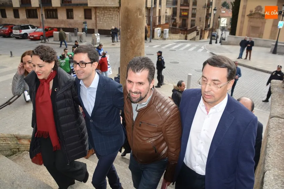 Luis Tudanca, candidato regional, también centró su intervención en la despoblación: ?Salamanca ha perdido 14.000 habitantes desde que Mañueco empezó a formar parte del gobierno de Castilla y León. Queremos cambiar eso, y hemos presentado un plan de retorno para dar ayudas a a quien contrate jóvenes indefinidos que puedan volver desde otras comunidades. José Luis es una persona humilde, serena y cabal, estoy seguro de que va a ser bueno, que piensa en Salamanca y piensa en el futuro, porque sino esta ciudad va a tener difícil salida?.