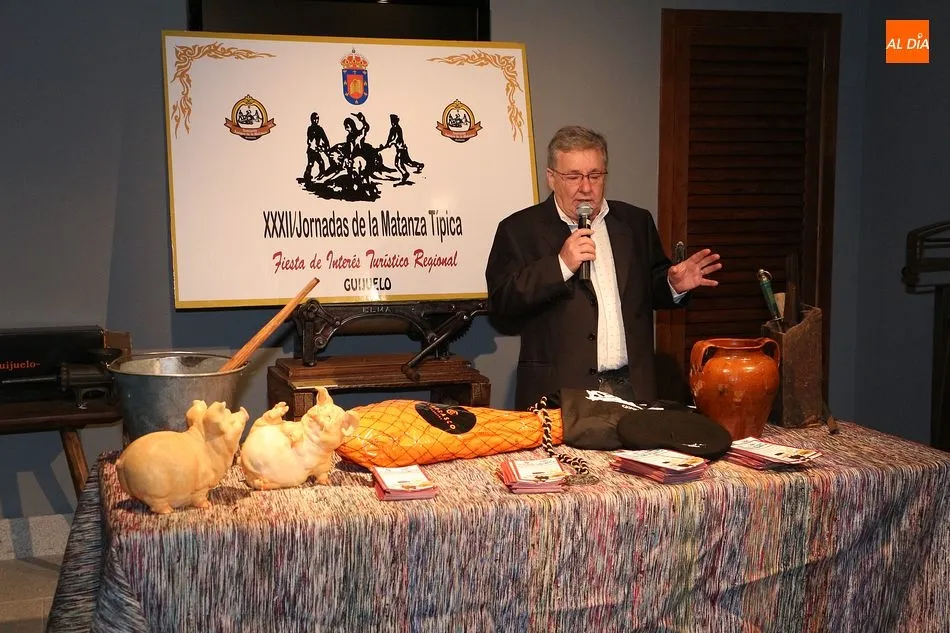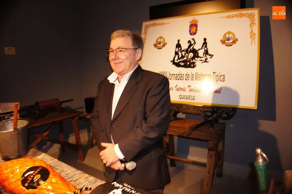 El conocido presentador televisivo, conocido principalmente por su espacio Cine de Barrio en Televisión Española, recordó su infancia en la que vivió la matanza y alabó la calidad del cerdo ibérico: ?Vengo a Guijuelo y cómo me atrevo a hablar de la matanza, rodeado de gente tan experimentada, yo que vengo por primera vez. En un programa de radio que tuve, y me llamó un oyente para decirme que era un cerdo, pero no como insulto, sino como halago, porque del cerdo se aprovecha todo. Y esta es la tierra de los mejores cerdos lo cual es algo muy positivo?. Sin olvidar sus productos y la importancia que supuso en el pasado: ?Qué grandes productos hay del cerdo como el jamón, el chorizo, el salchichón, el morro, la oreja? lo hablaba con Jesús Merino, ¿cómo podemos hablar mal del cerdo si gracias a él se pudo superar tanta hambre en el pasado??.