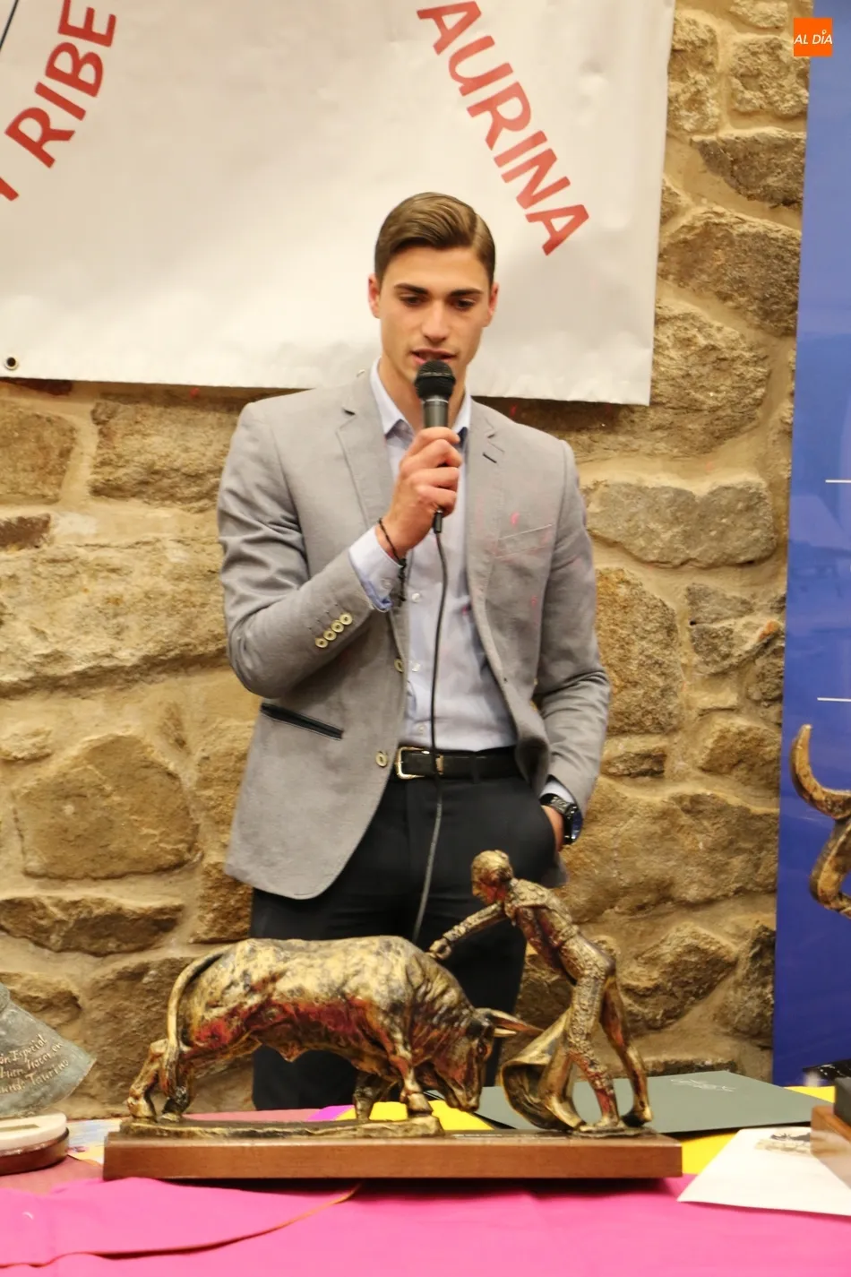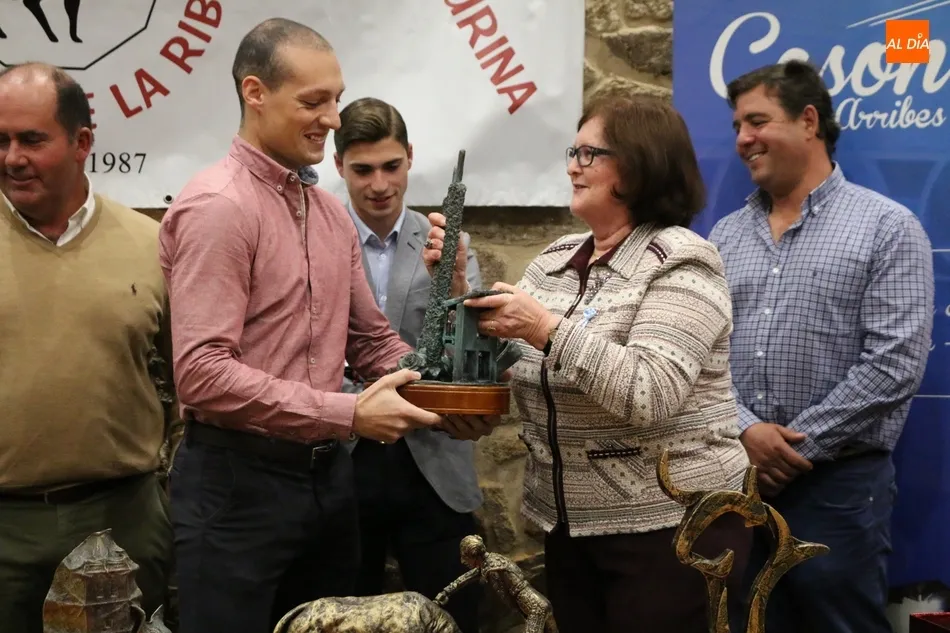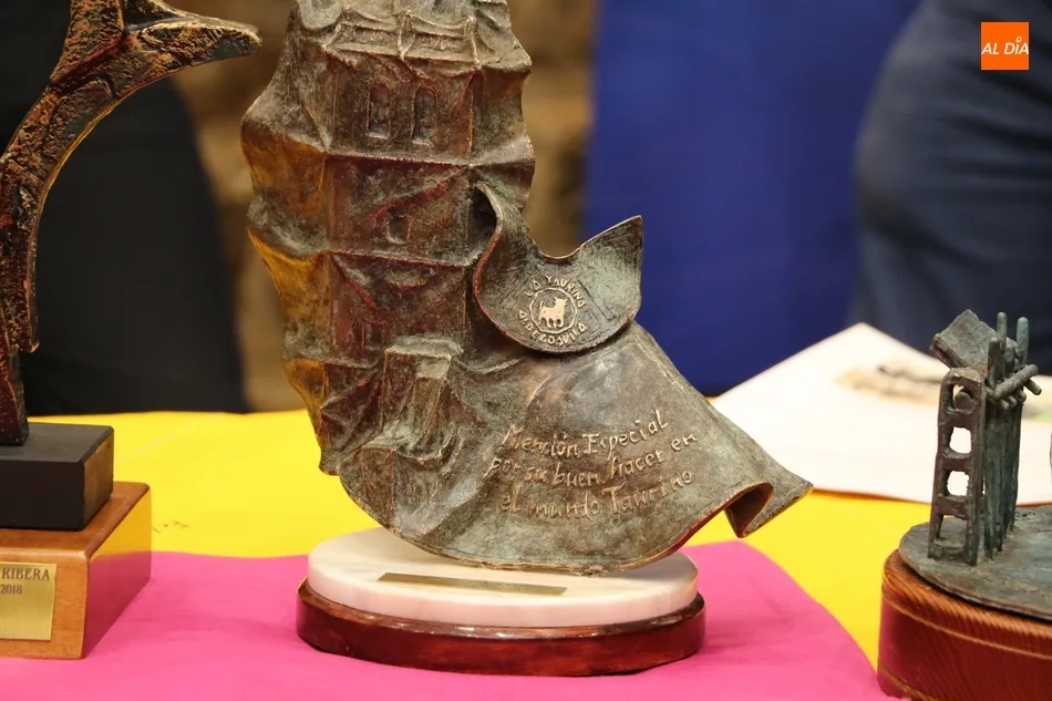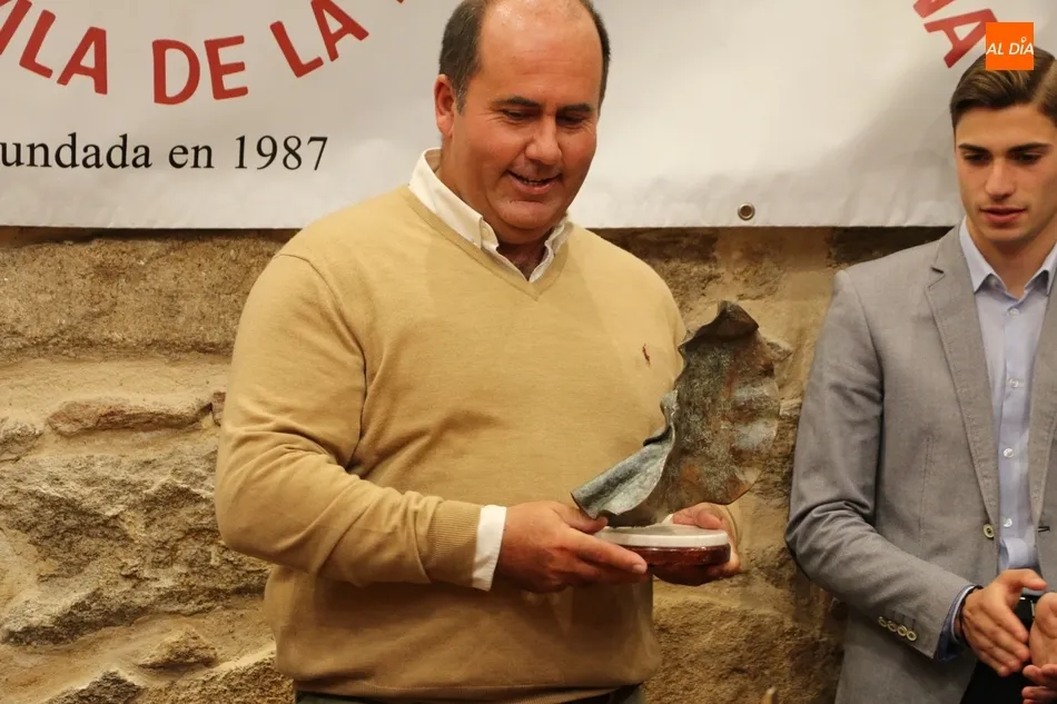Y una nueva edición, la ganadería de Valrubio obtuvo un nuevo reconocimiento, en esta ocasión la Mención Especial por la novillada que lidió en esta plaza el 26 de agosto pasado bajo el hierro de Valdeflores. Juan Carlos Rodríguez recibió de mano de su autor, el artista local Guzmán Pascual, un bonito trofeo con la torre de la iglesia de Aldeadávila. Juan Carlos Rodríguez agradeció expresamente al Ayuntamiento de Aldeadávila este nuevo galardón, ?porque si no me comprasen los novillos no estaría aquí?.