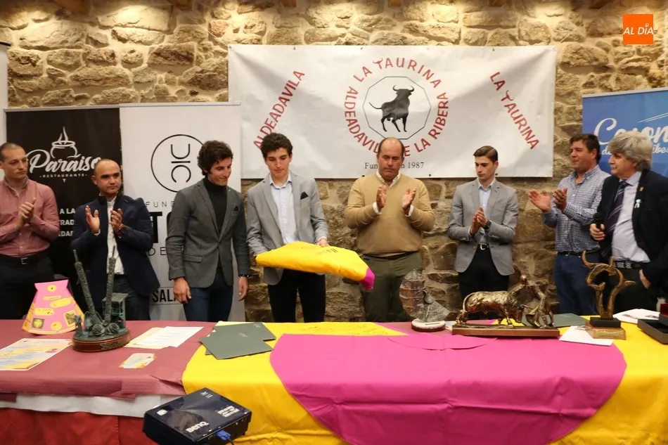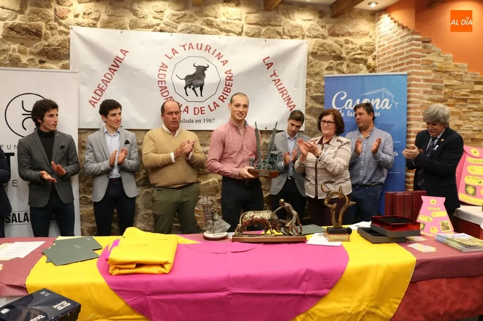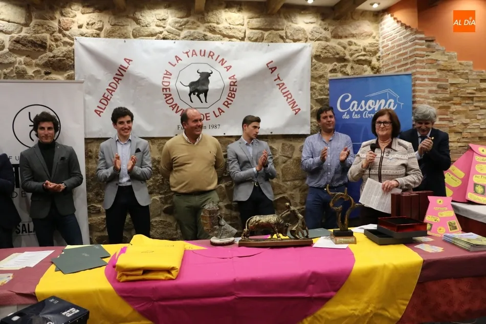 La Peña la Taurina de Aldeadávila de la Ribera celebró este sábado la entrega de sus premios taurinos con motivo del desarrollo en esta localidad de la feria de novilladas que organiza su Ayuntamiento con motivo de sus fiestas patronales en honor a ?San Bartolo?. En esta vigésimo segunda edición de la entrega de estos premios hay que destacar el numeroso público que congregó el salón del restaurante El Paraíso, establecimiento que acogió un año más este evento dirigido por el presidente de la Peña La Taurina, Luis Fraile.