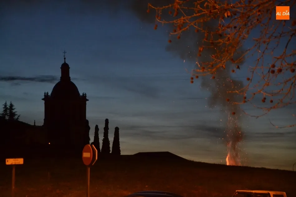 El glacis de los fosos situado frente al Mercado de Abastos albergó durante la tarde del lunes la quinta y última de las hogueras que tienen lugar cada año en Ciudad Rodrigo en las semanas previas al Carnaval del Toro (aunque este año todavía queda bastante para el mismo).