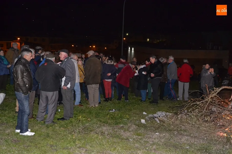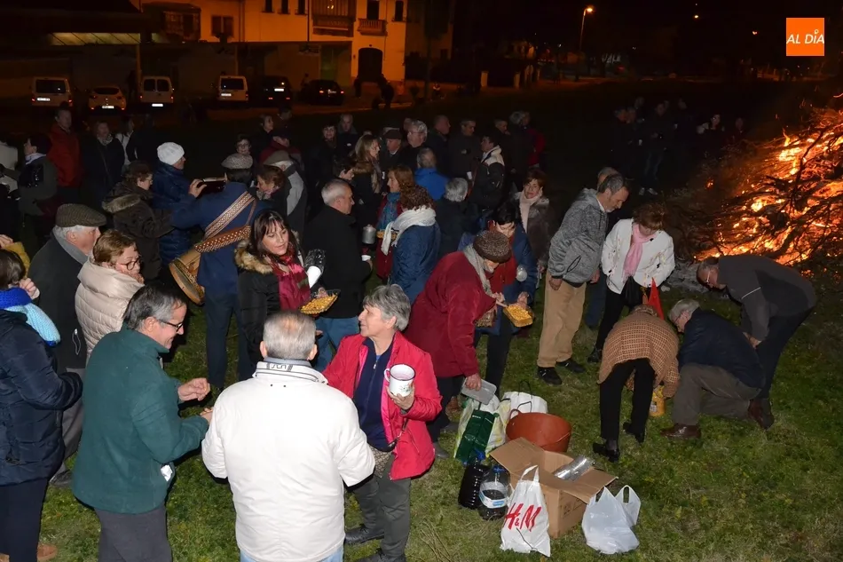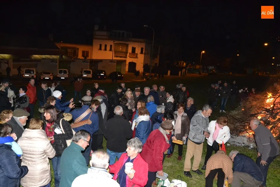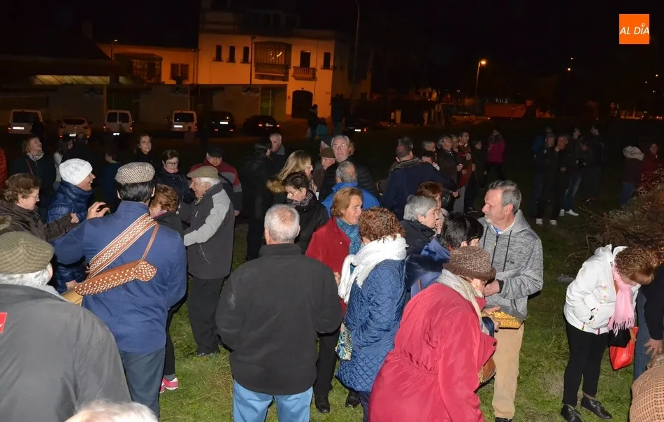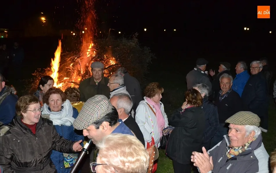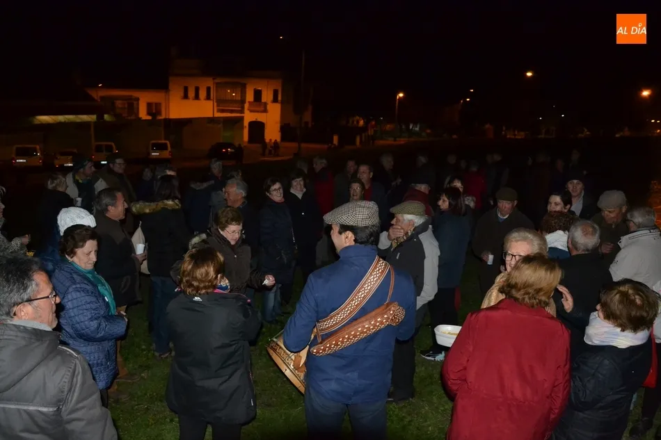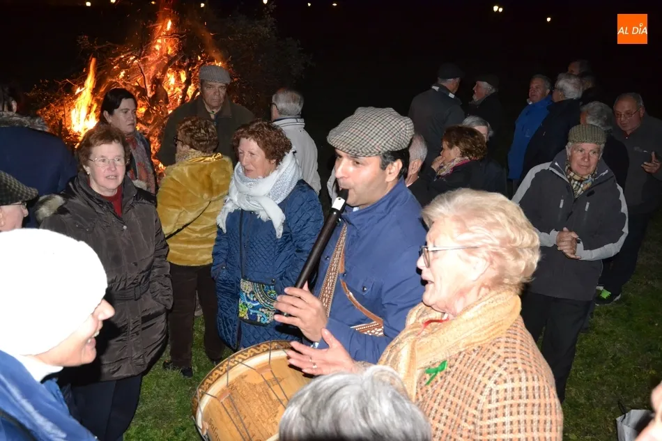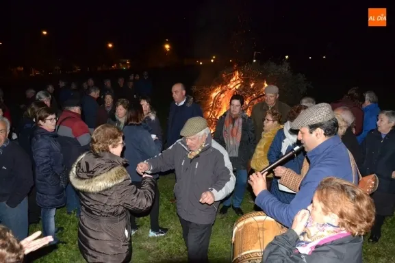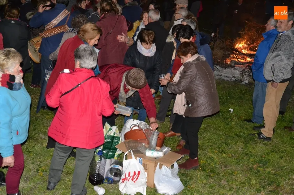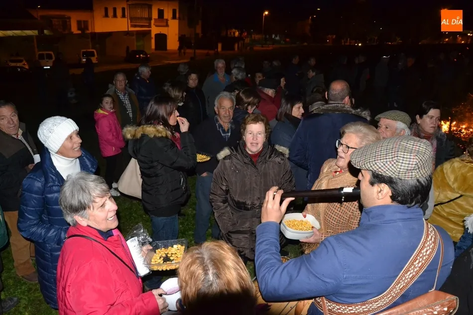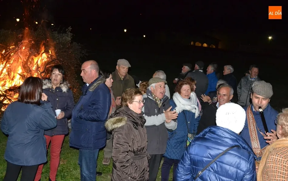 Junto al fuego se congregaron alrededor de un centenar de personas que, además del fuego, disfrutaron de la música de un tamborilero, que hizo que se animasen a bailar unas cuantas personas (también se arrancó a cantar una persona). Todos los asistentes (entre los que estuvieron los concejales del PP Beatriz Jorge Carpio, José Manuel Jerez, Ramón Sastre y Jesús Sánchez Agudo) pudieron degustar chochos y vino, ofrecidos por las Águedas del Mercado de Abastos.