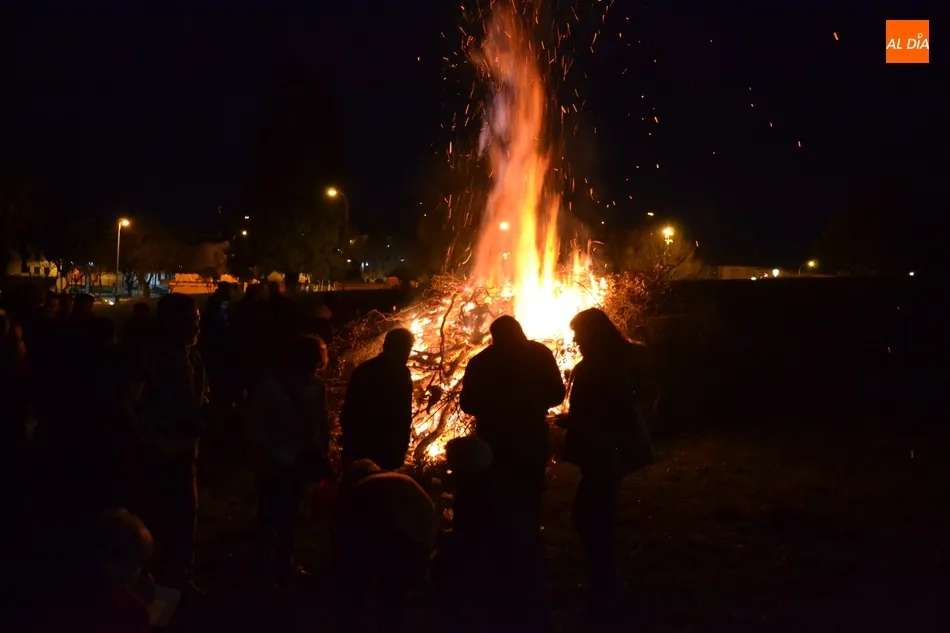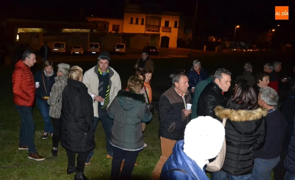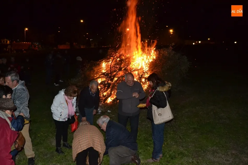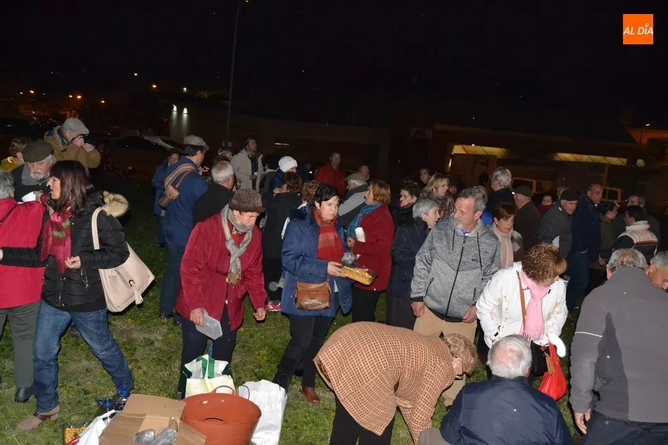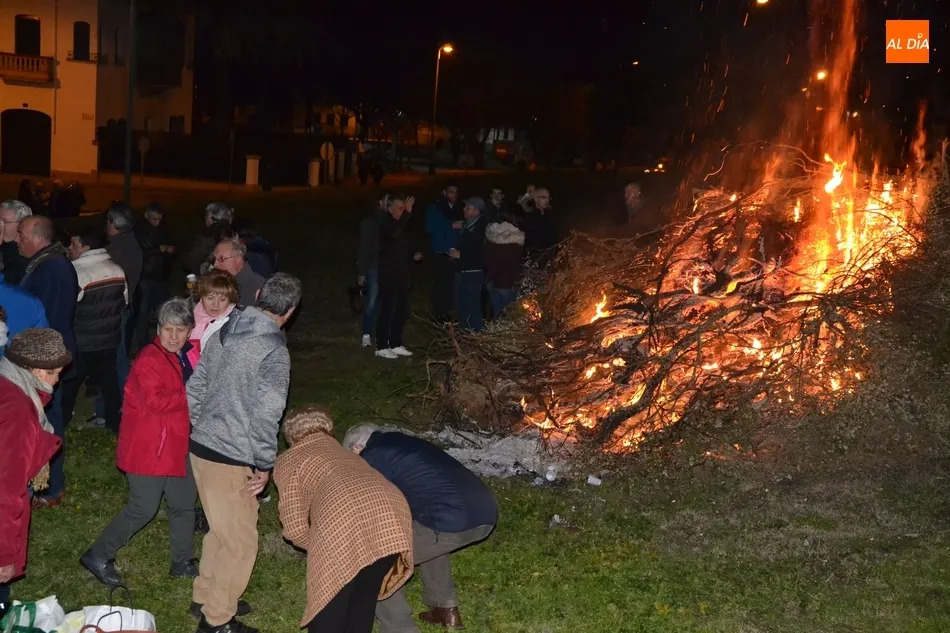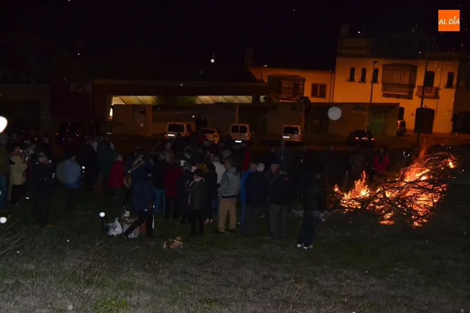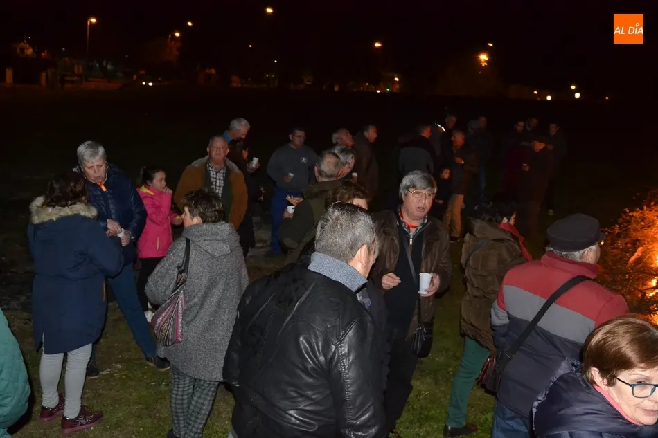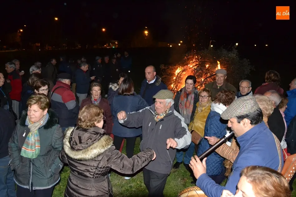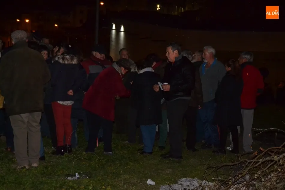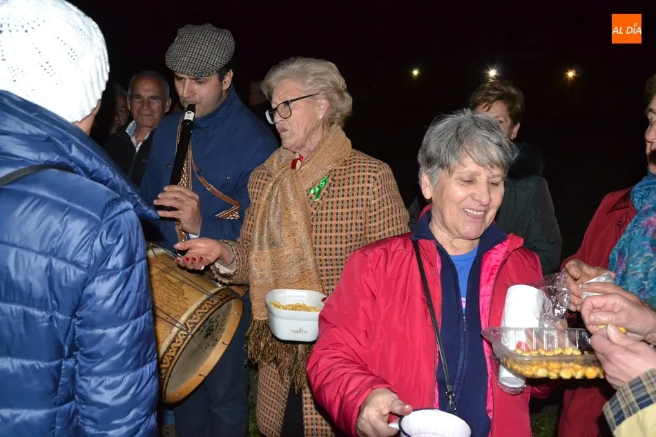 Junto al fuego se congregaron alrededor de un centenar de personas que, además del fuego, disfrutaron de la música de un tamborilero, que hizo que se animasen a bailar unas cuantas personas (también se arrancó a cantar una persona). Todos los asistentes (entre los que estuvieron los concejales del PP Beatriz Jorge Carpio, José Manuel Jerez, Ramón Sastre y Jesús Sánchez Agudo) pudieron degustar chochos y vino, ofrecidos por las Águedas del Mercado de Abastos.