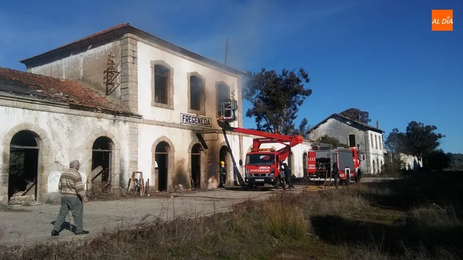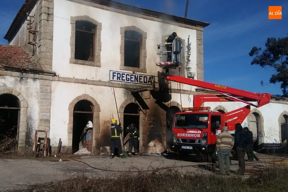 Efectivos del parque comarcal de bomberos de Lumbrales procedían este martes a la extinción de un incendio declarado en la antigua estación de tren de La Fregeneda. Las causas apuntan a una posible negligencia con motivo de las comidas campestres que se celebran por San Blas.