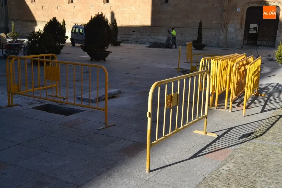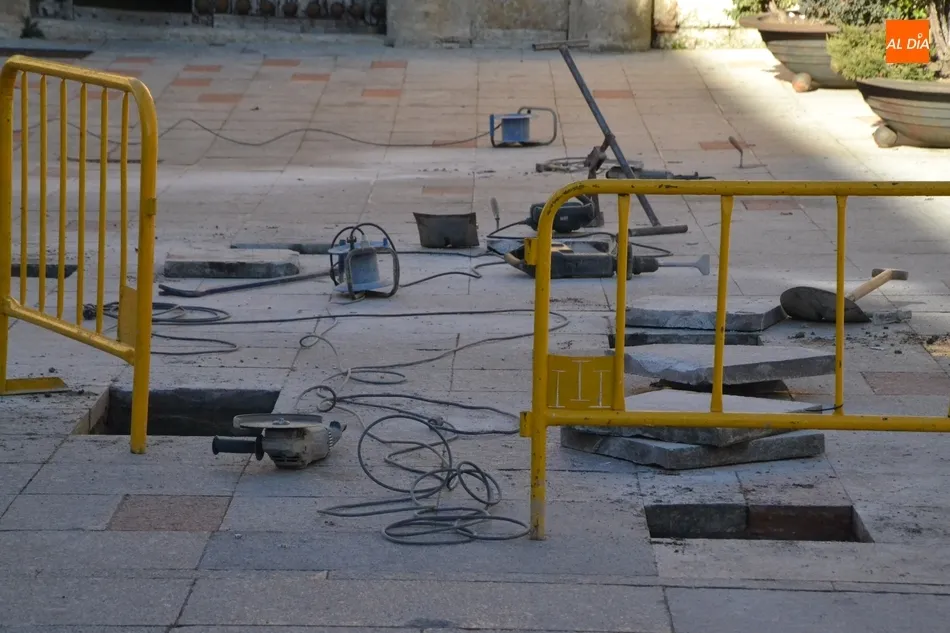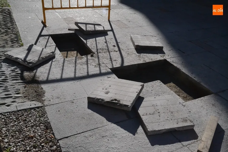 Durante estos días la Plazuela del Conde de Ciudad Rodrigo está siendo objeto de una nueva intervención en su superficie, donde se suele actuar de forma frecuente para reasentar las losetas que van quedando sueltas. Como se puede ver en la imagen, en la mañana del miércoles se estaba actuando en unas cuantas, conformando a media mañana un curioso ?buscaminas? de losetas en el intervalo entre su retirada y posterior recolocación.