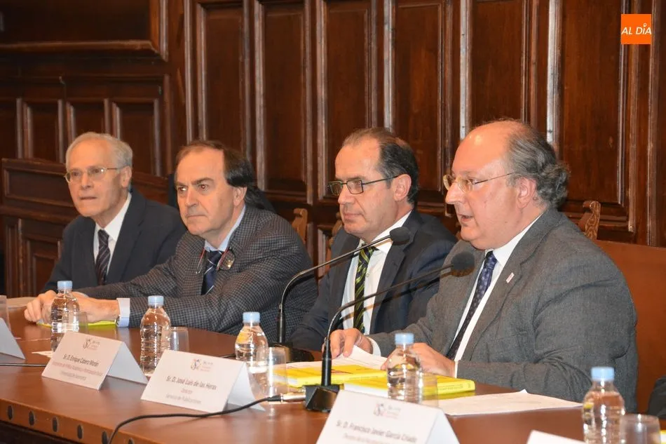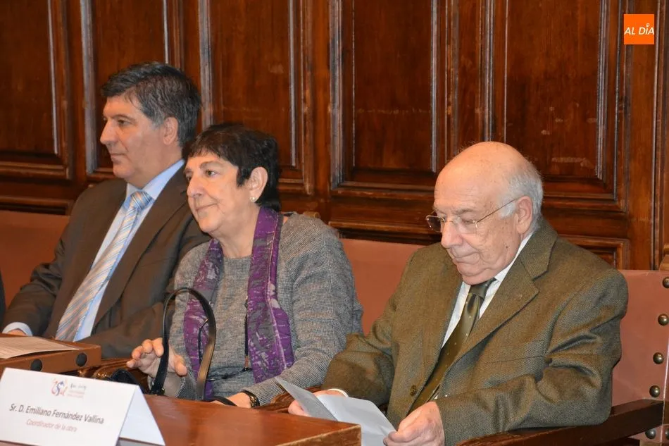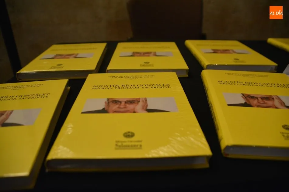 La figura y la labor profesional de Agustín Ríos González, en sus diferentes facetas, han sido protagonistas en el acto que ha tenido lugar en el Aula Unamuno de las Escuelas Mayores, con la presentación del libro ?Agustín Ríos González: médico, profesor, sacerdote?, libro publicado por Ediciones Universidad de Salamanca. Los coordinadores del libro, los catedráticos de Filología Latina y Filosofía de la USAL Antonio Heredia y Emilio Fernández, han estado acompañados del vicerrector de Política Académica y Participación Social de la USAL, Enrique Cabero; el presidente del Colegio Oficial de Médicos de Salamanca, Santiago Santa Cruz; el director del Departamento de Hematología de la USAL, Marcos González; y el decano de la Facultad de Medicina, Francisco Javier García.