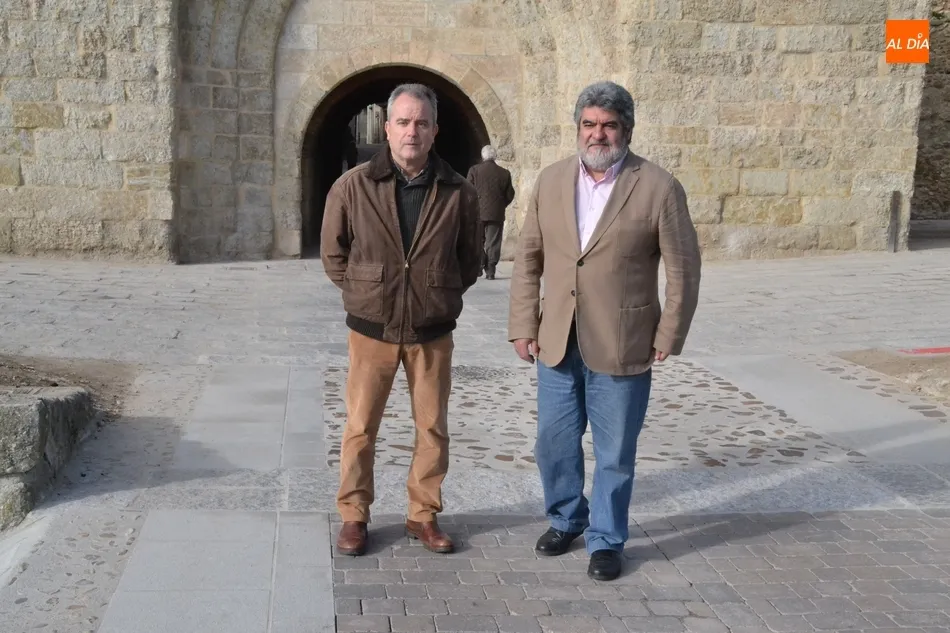 El alcalde de Ciudad Rodrigo, Juan Tomás Muñoz, y el delegado de Obras Joaquín Pellicer se acercaron en la mañana del jueves hasta la Rúa del Sol para dar a conocer los detalles de la intervención que se ha realizado en los últimos meses en el tramo de esa vía comprendido entre la confluencia con las calles Muralla y Enrique Zarandieta y el Revellín de San Andrés.