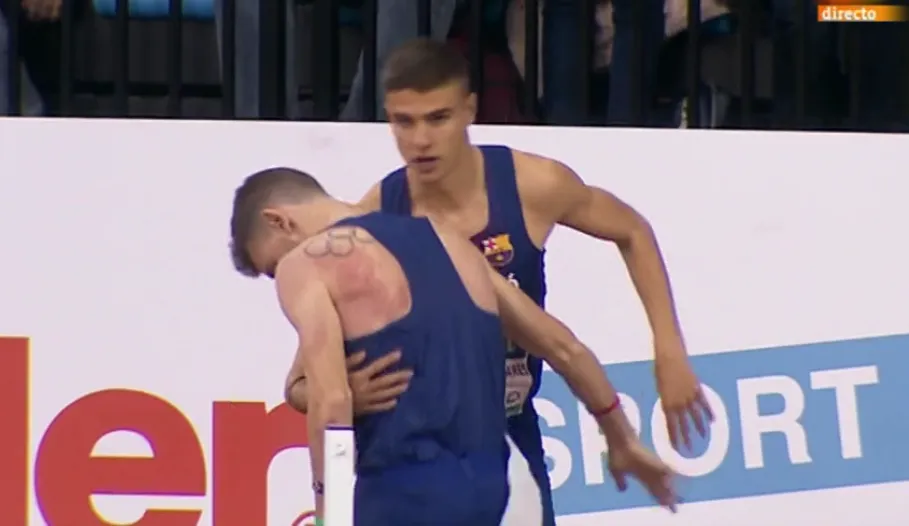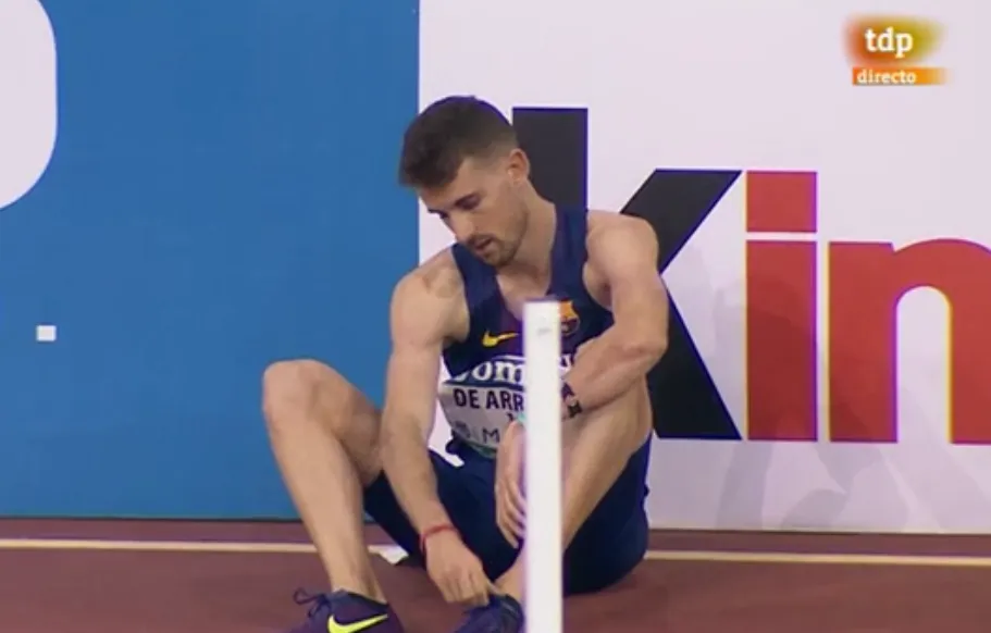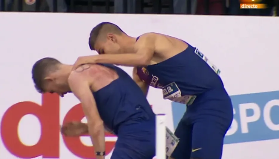 La caída fue producto del ?empujón? de otro atleta de su mismo Club, Pablo Sánchez-Valladares, tras generarse un pequeño barullo cuando la carrera estaba al paso por la segunda curva de la pista de Gallur, la primera con calle abierta. Álvaro de Arriba había salido por la calle 4, colocándose en la compensatoria en la parte intermedia del grupo.