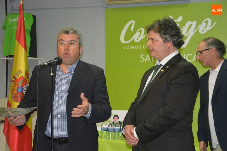 El candidato salmantino, Antonio Jiménez, ha estado arropado por el secretario general nacional del partido, Leopoldo Bernabéu