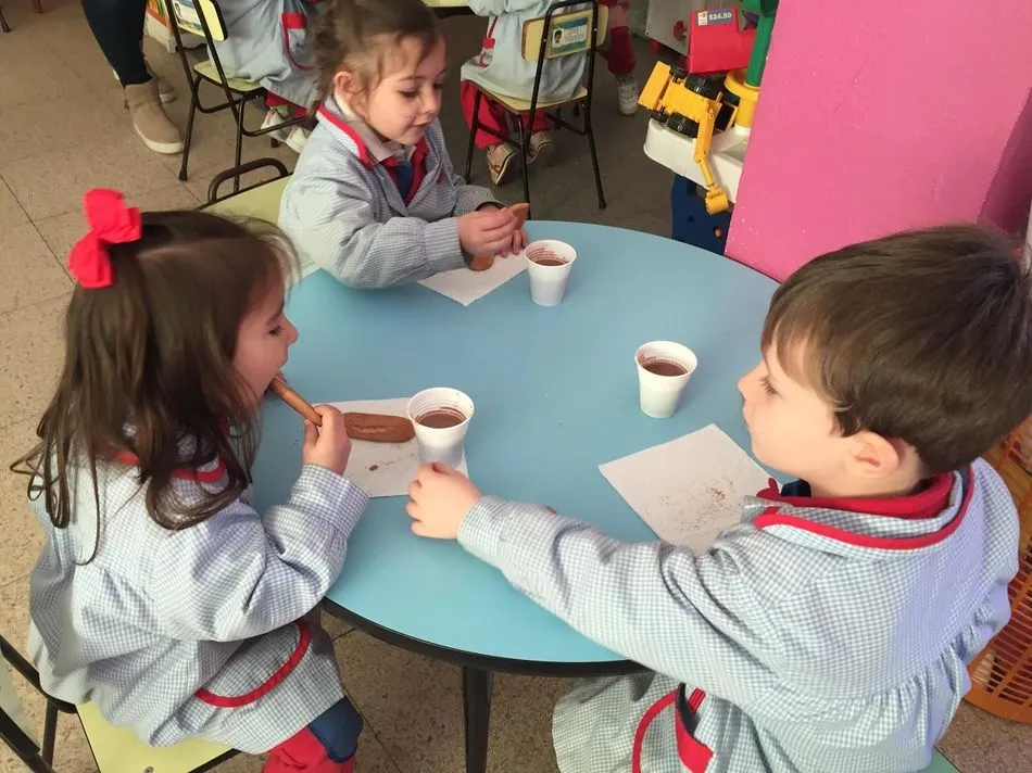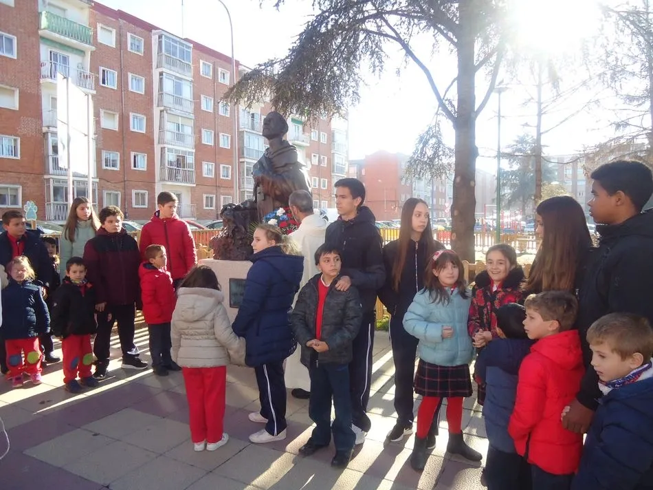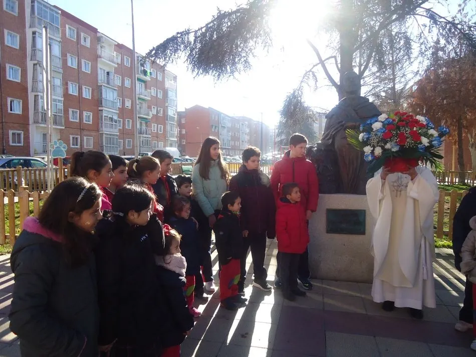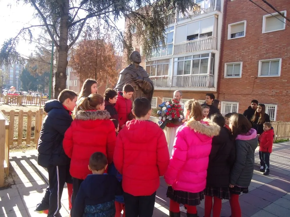 Tras la eucaristía en la parroquia y la ofrenda floral en la estatua del santo, alumnos, padres y profesores han compartido un chocolate solidario