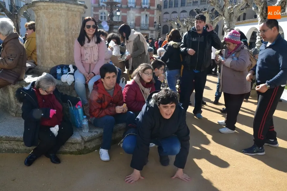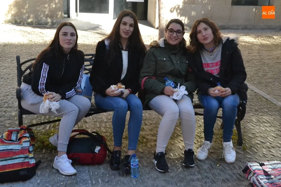 Espléndida Operación Bocata con más de 1.250 bocadillos repartidos   | Imagen 2Entre los primeros en acudir a la Plazuela del Buen Alcalde a por su bocadillo estuvieron unos cuantos usuarios de Asprodes, alumnos del IES Tierra de Ciudad Rodrigo (que acudieron con uno de sus profesores todavía en horario escolar), así como un amplio grupo de Amanecer, cuya estancia en la Plazuela fue animada por una persona cantando. A partir de ahí, hubo continuas oleadas, especialmente coincidiendo con la hora de salida de los colegios y de los institutos. Viendo la demanda, las voluntarias de Manos Unidas tuvieron que ponerse a hacer más bocadillos.