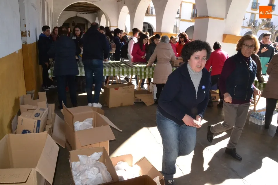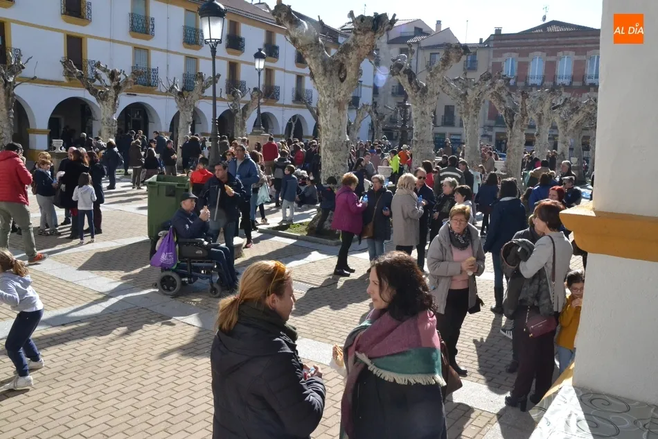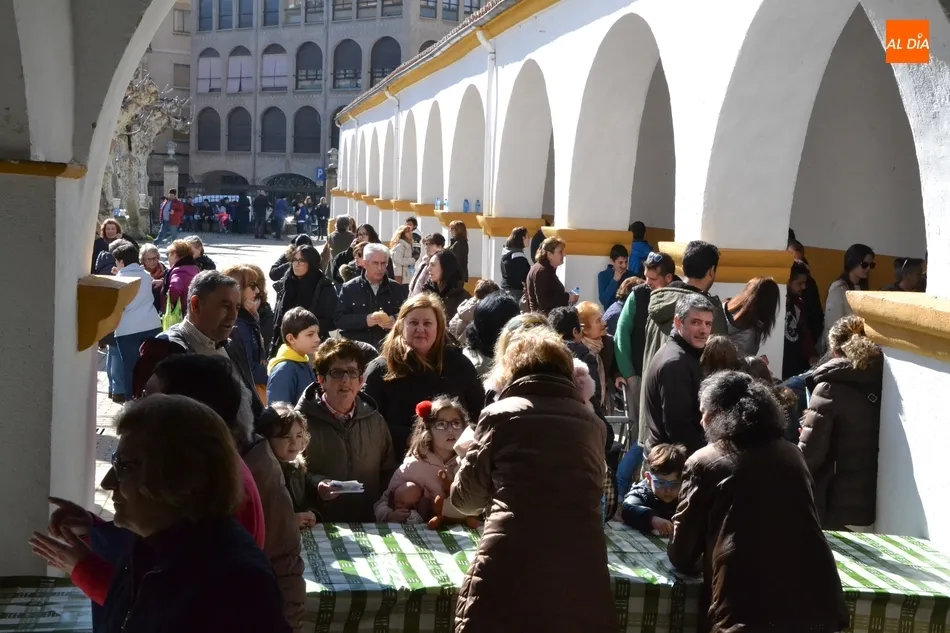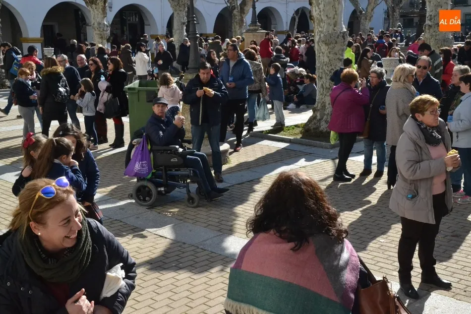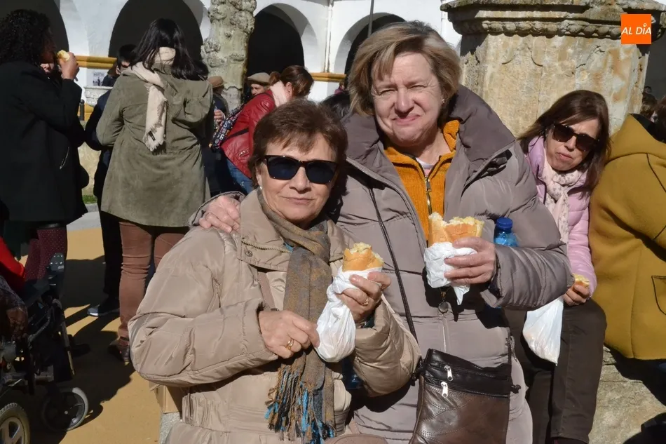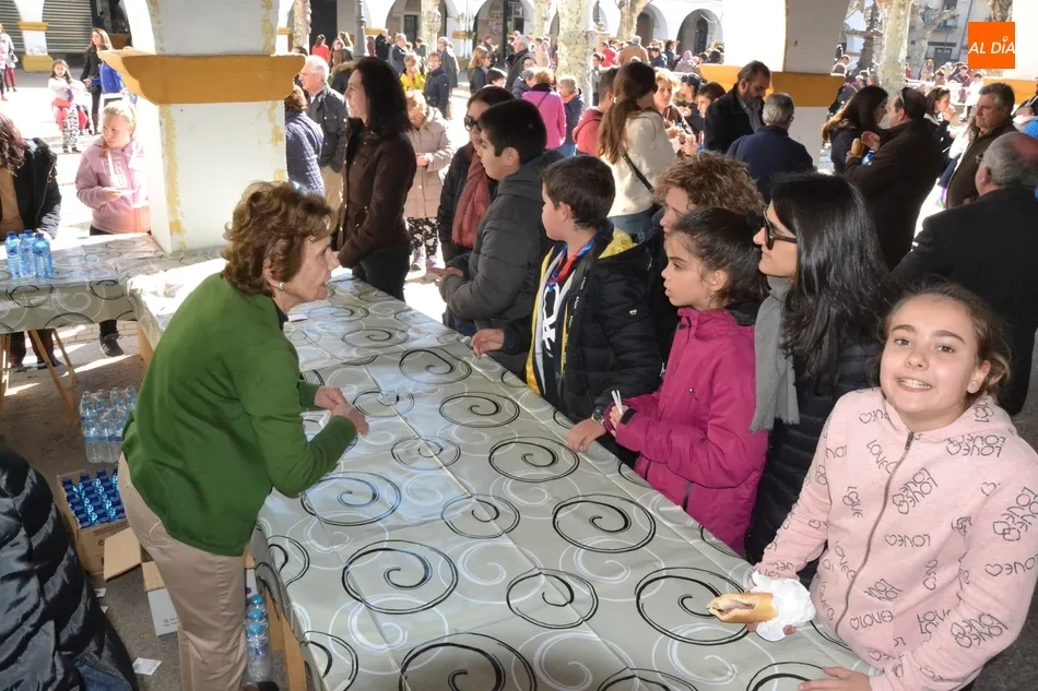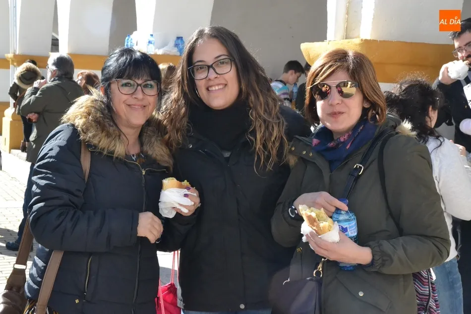 De antemano, se habían vendido 1.100 tickets (la Delegación había exhortado a que se comprasen en días previos para calcular el número de bocadillos necesarios), preparándose una cifra de bocadillos semejante, pero esa espléndida meteorología animó a acercarse a la Plazuela a unos cuantos mirobrigenses que no lo tenían previsto (al menos 150 personas más), teniendo que trabajar las voluntarias de Manos Unidas deprisa y corriendo para atender este exceso de demanda.