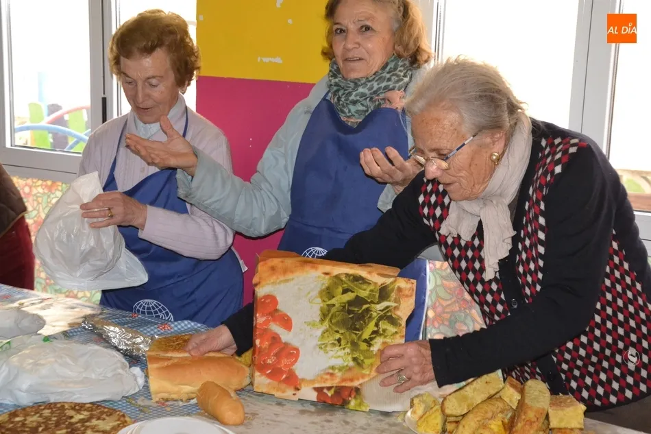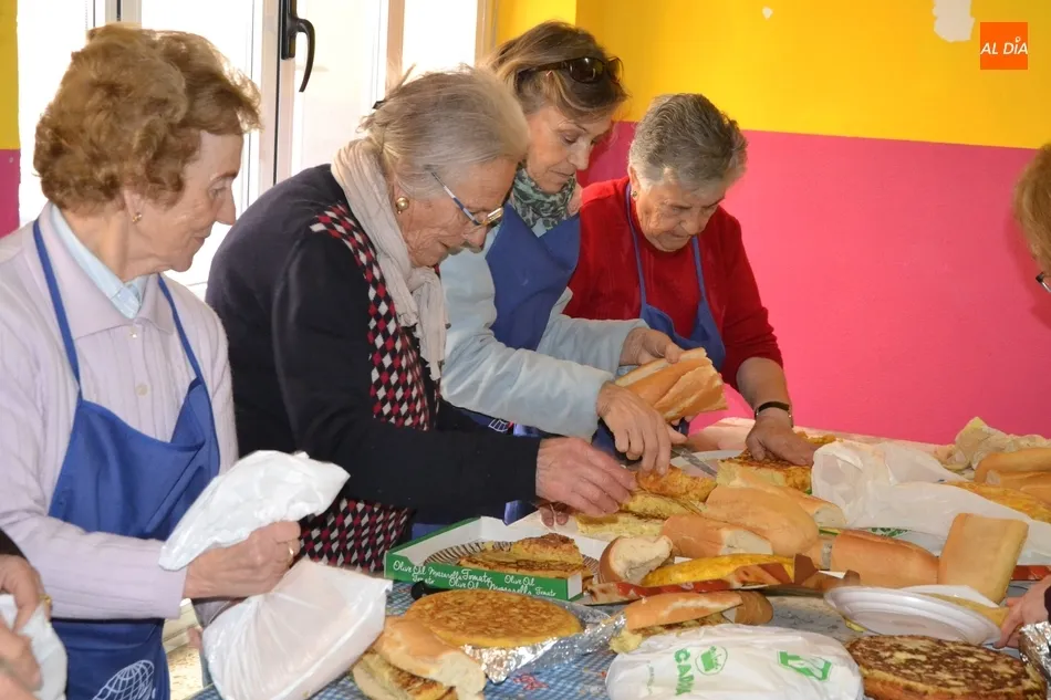 Como siempre, estas voluntarias habían estado trabajando desde primera hora de la mañana en el interior de la antigua guardería Mi Otra Casa preparando bocadillos de tortilla (los más demandados), chorizo, salchichón, queso, mortadela, chopped, jamón de York o sardinas, gracias a la colaboración de numerosos particulares y empresas mirobrigenses. En el transcurso de esa preparación, recibieron la visita de Marcos Iglesias y los diputados nacionales del PP que estuvieron de visita en Miróbriga en la mañana del viernes.