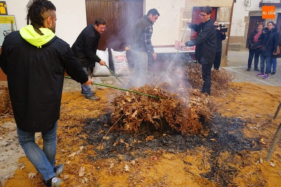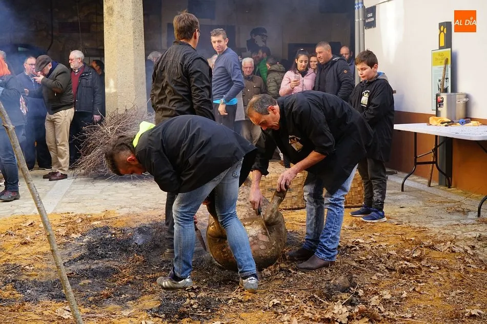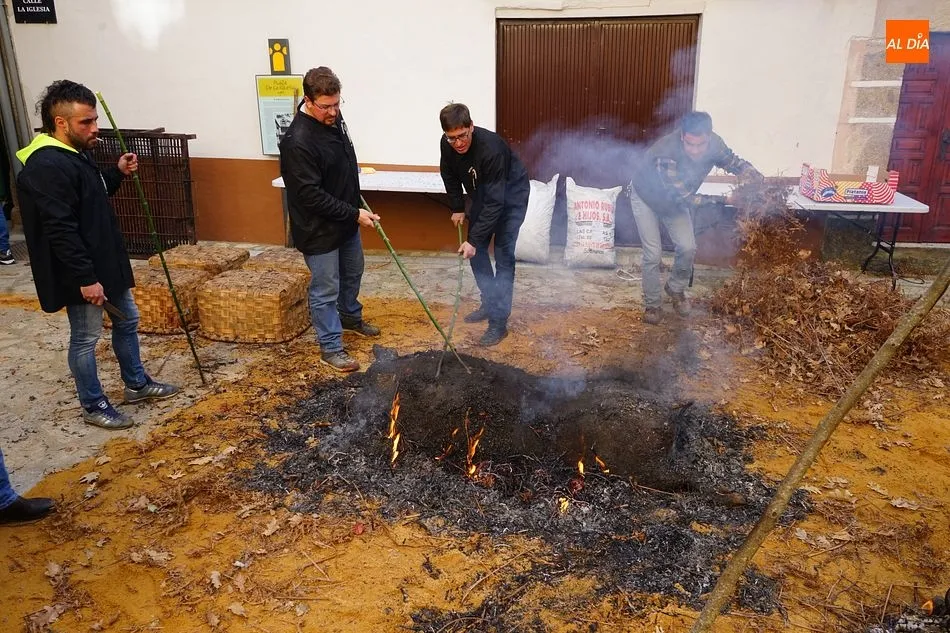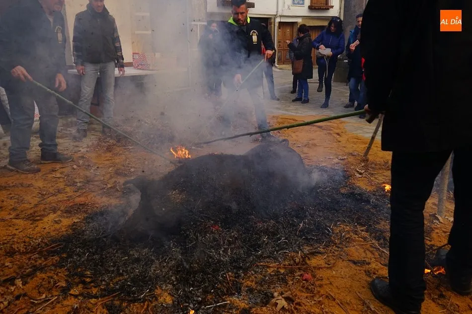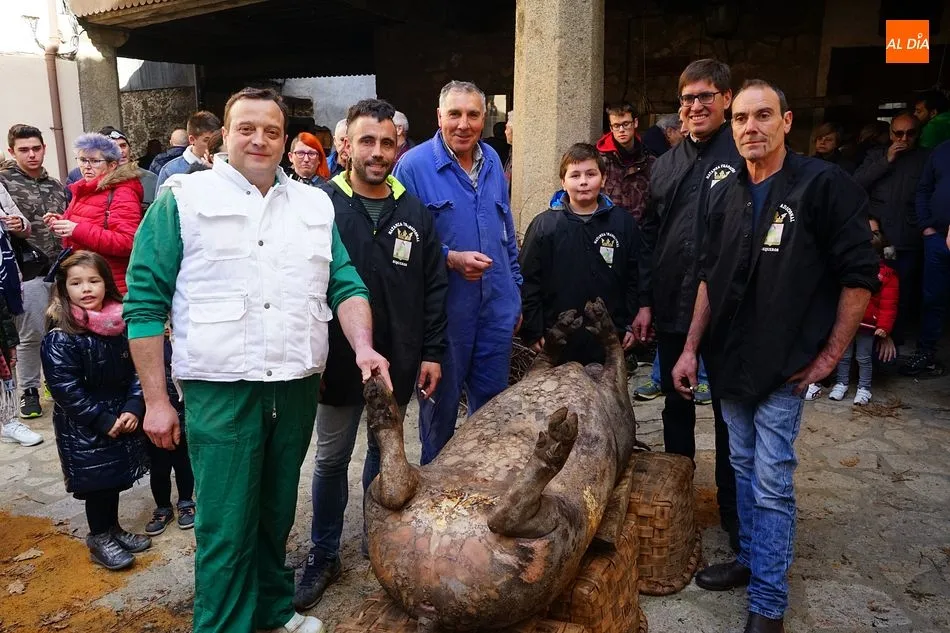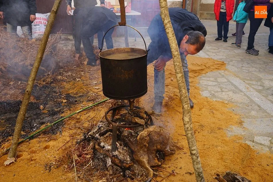 Con un tiempo envidiable, y con el solano de la iglesia prácticamente lleno, se procedió al pesaje del cerdo, que llegó hasta las 17 arrobas, y el inicio de las tareas de chamuscado, despiece y clasificación. Como en todas las fiestas de la matanza del circuito de la Diputación, se contó con la presencia de animadores que invitaban a los visitantes a participar, ya fuera adivinando el peso del cerdo o contando detalles sobre el proceso chacinero.