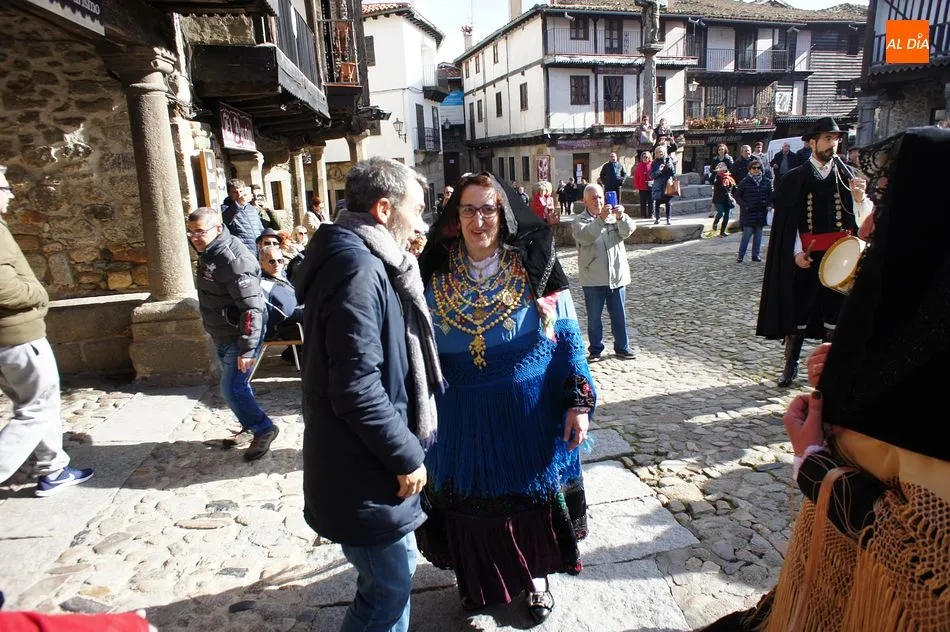 La Alberca vive hoy su particular fiesta de las águedas con la reunión del colectivo con diversas actividades a lo largo de la jornada. Como es tradición, se comenzó con la llegada de las mujeres al son de la gaita y el tamboril al Ayuntamiento, donde les estaba esperando el alcalde, Miguel Ángel Luengo, para entregar el bastón de mando a la abadesa, Francisca Martín, como símbolo de que hoy son ellas las que mandan en la localidad.