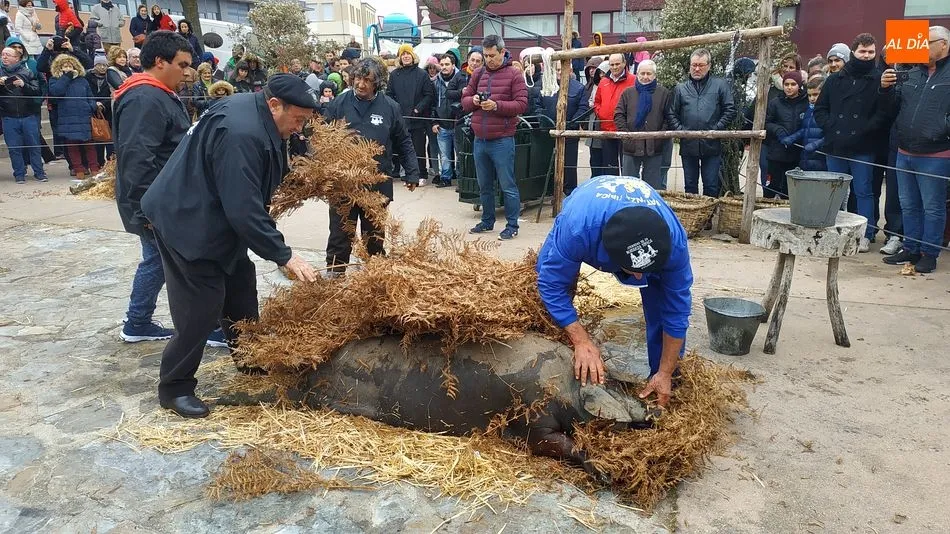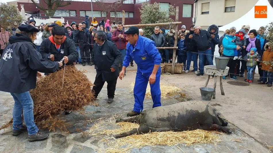 El público, pese a la meteorología adversa, fue muy numeroso gracias a una gran cantidad de aficionados del Salamanca UDS que decidieron ampliar su visita a la villa pasando primero por la matanza y más tarde en el derbi frente al CD Guijuelo de por la tarde. Las águedas de Guijuelo, que celebraron su fiesta el pasado viernes, comenzaron a repartir las diversas degustaciones, comenzando por las perrunillas y el aguardiente y finalizando con las tradicionales chichas.