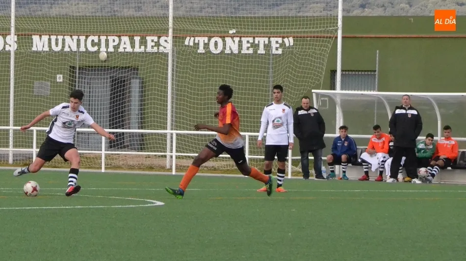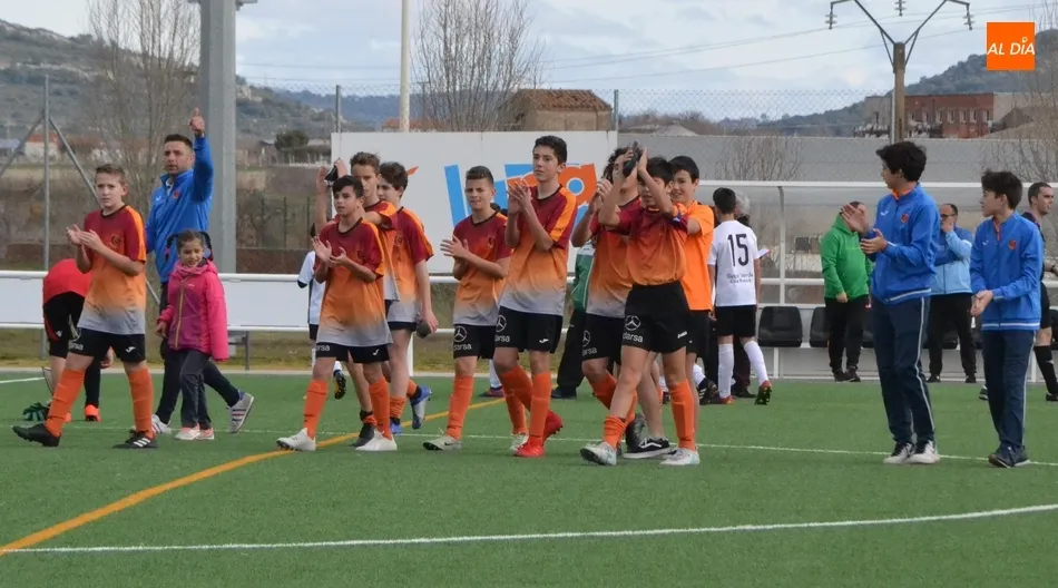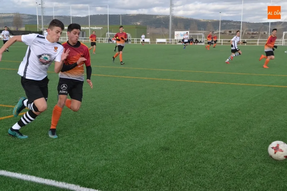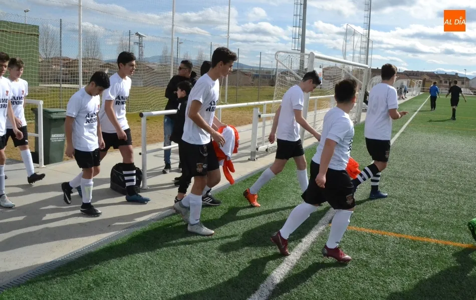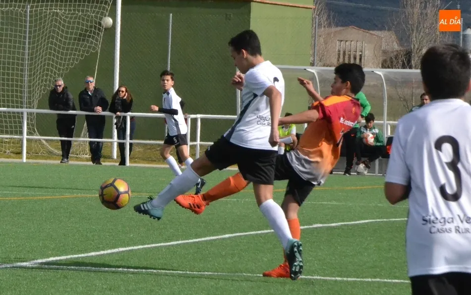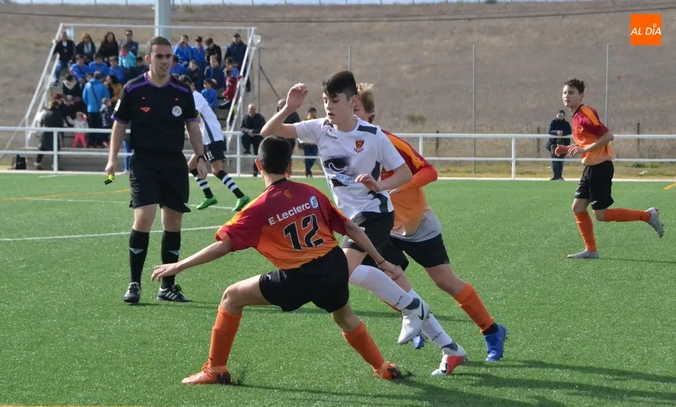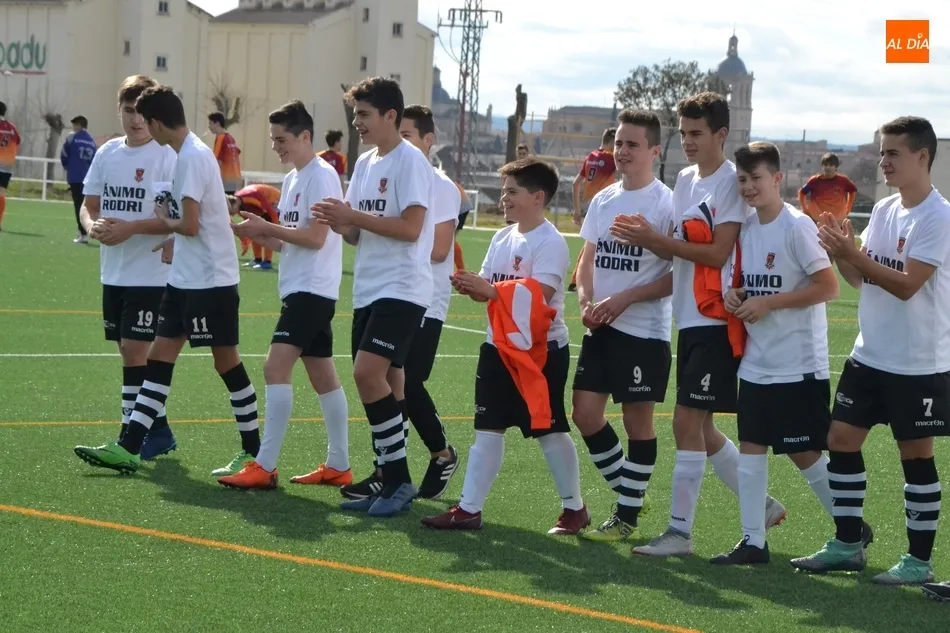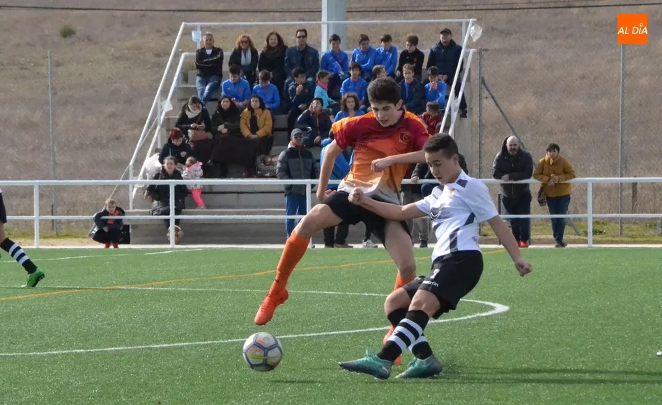 El triple duelo sabatino en los Campos de Toñete entre conjuntos del Ciudad Rodrigo CF y del Carbajosa de la Sagrada se abrió en el primer tramo de la mañana (cuando había un agradecido sol que posteriormente desapareció dando paso a una bajada de temperatura) con el duelo de infantiles, que a su vez era el más desigual de la jornada atendiendo a la clasificación.