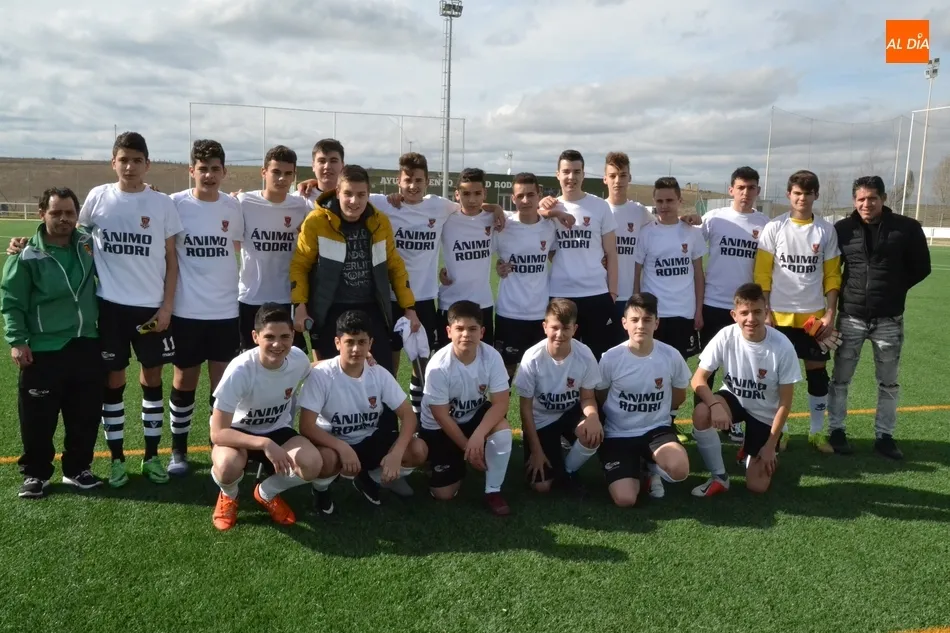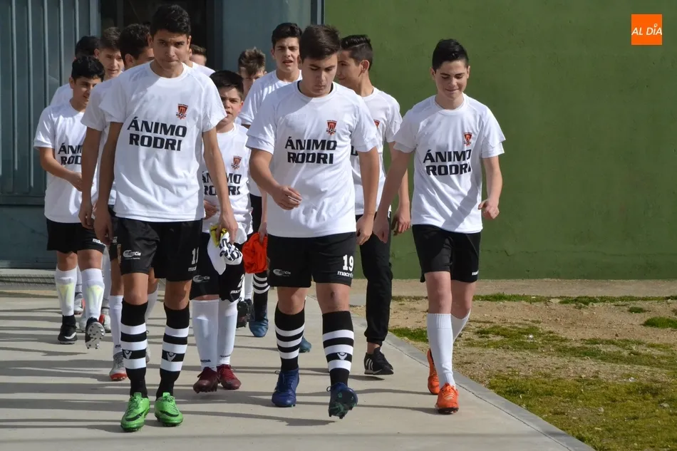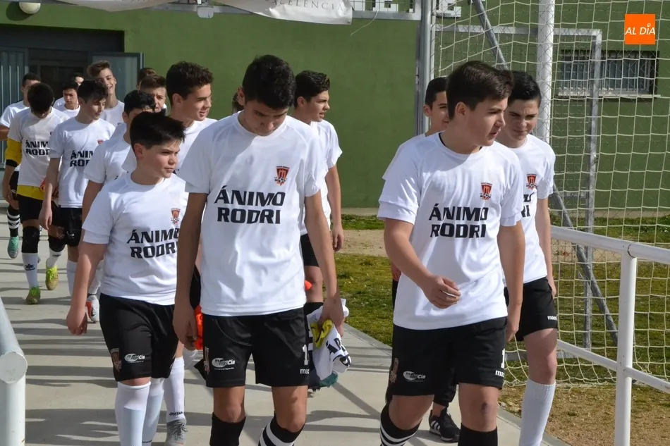 El caso es que en ese encuentro frente a los tormesinos Rodrigo sufrió una fea caída en torno al minuto 25 en la cual se fracturó la tibia. Nadie sabe muy bien cómo, el jugador mirobrigense fue capaz de completar aquel partido, detectándosele la fractura una vez fue a Urgencias tras el encuentro. Para darle ánimos ante la larga recuperación que tiene por delante, sus compañeros le sorprendieron saltando al campo en la mañana del sábado con unas camisetas especiales.