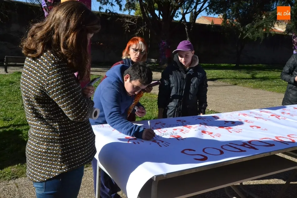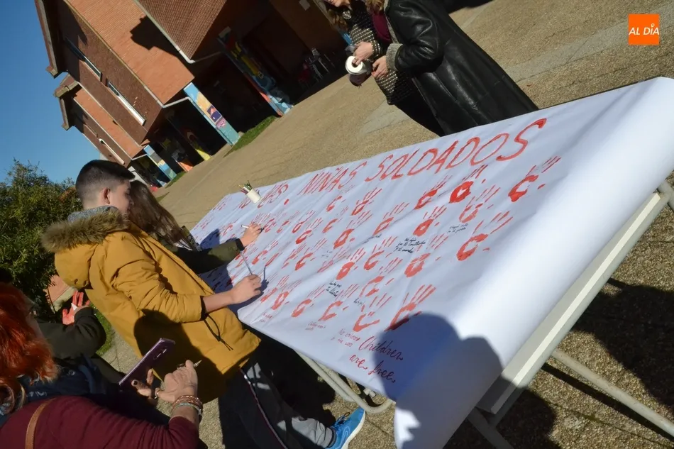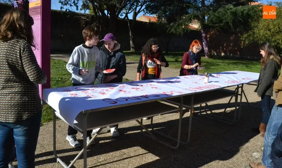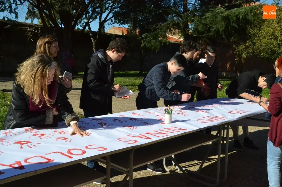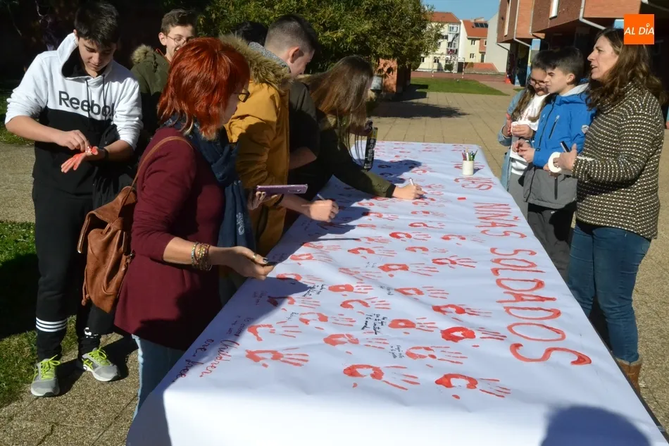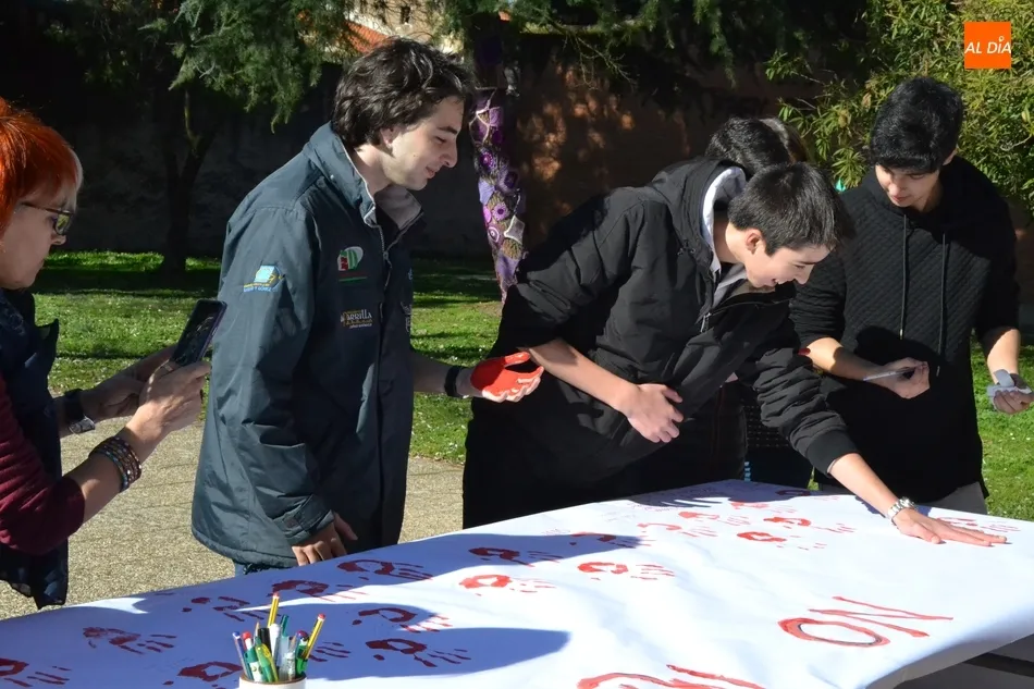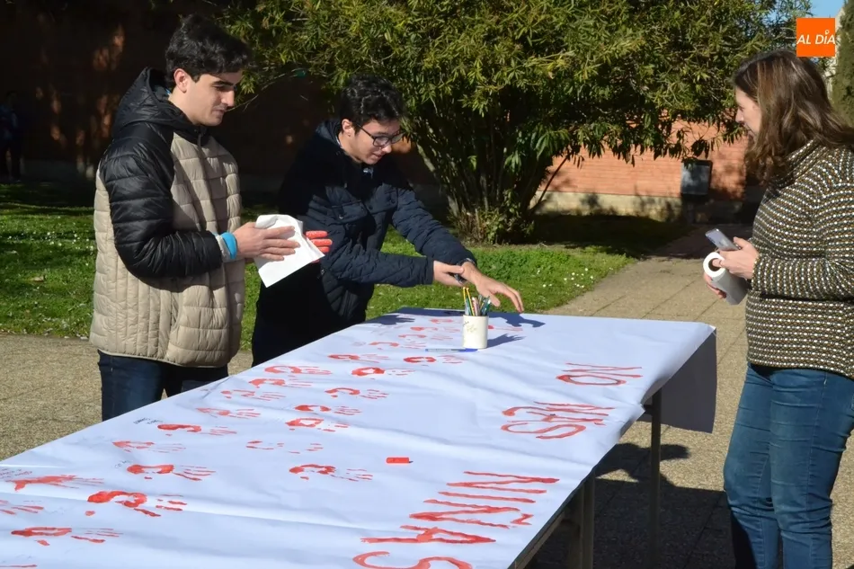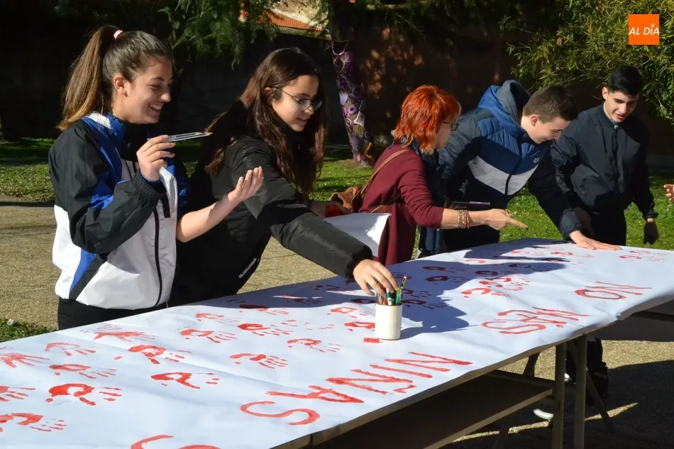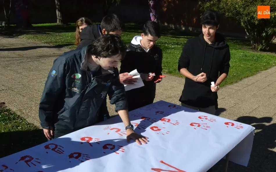 En este sentido, el IES Fray Diego Tadeo desplegó en el patio durante el tiempo del recreo un gran lienzo blanco para que todos aquellos alumnos y profesores que quisiesen se pintasen una mano de color rojo y posteriormente la dejaran plasmada en el lienzo, acompañada de algún mensaje alusivo a la conmemoración.