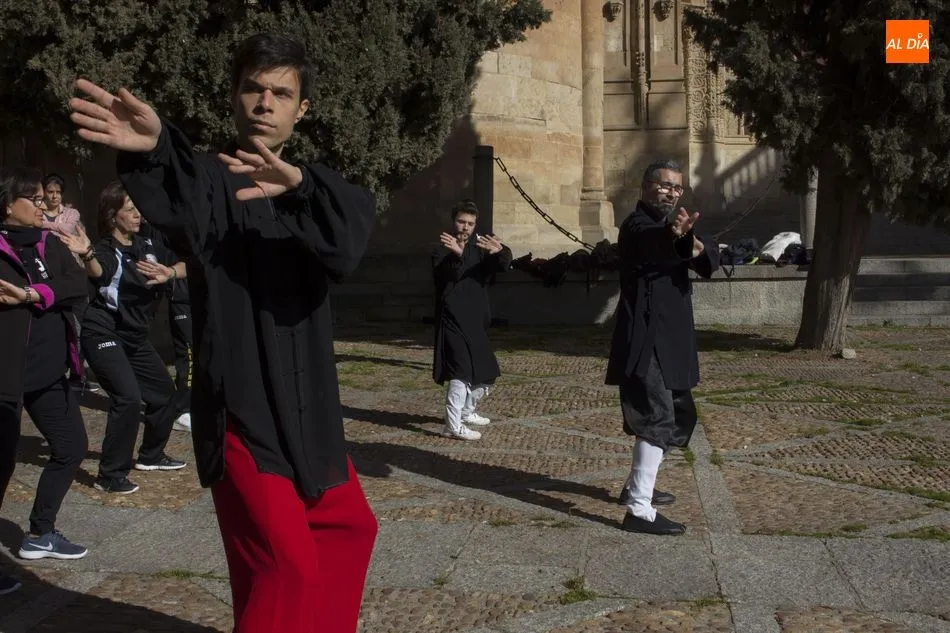 La escuela Taiping en colaboración con Andeni, Asociación Nacional en Defensa del Niño y mediadora en procesos de adopción de niños chinos, daban la bienvenida al año nuevo lunar con la celebración de una intensa jornada relacionada con el país asiático. Así, el pasado sábado, la escuela de artes marciales ofreció una clase al aire libre, concretamente en Patio Chico de Salamanca, un entorno escogido por su particular belleza y buena energía.