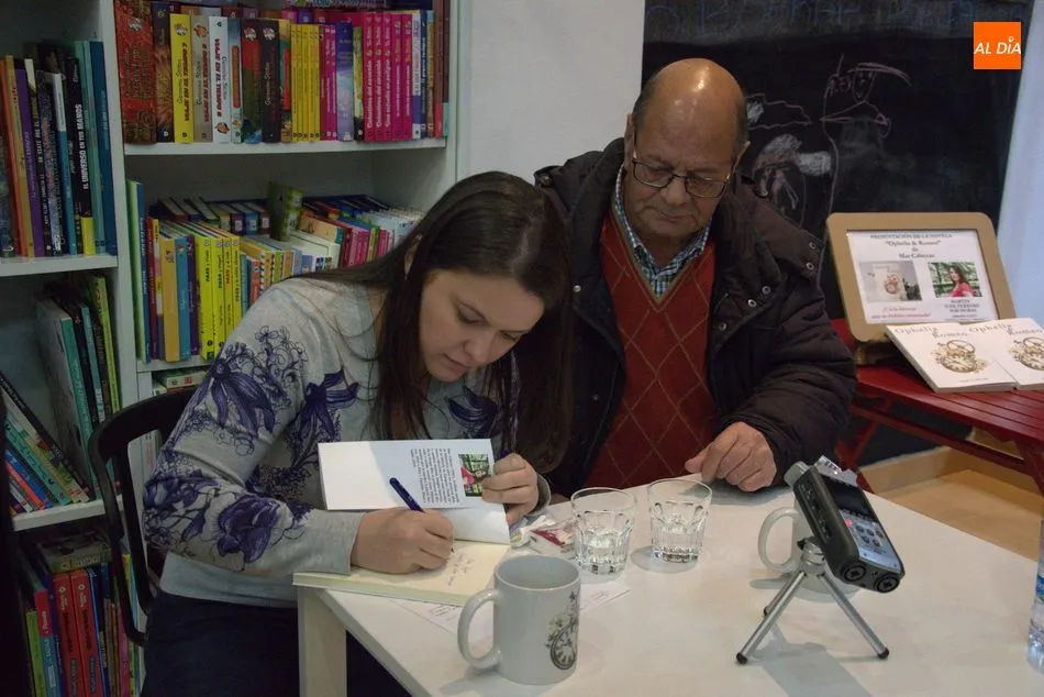La escritora salmantina Mar Cabezas ha presentado este martes, en un acto celebrado en la librería Yuste, su primera novela ?Ophelia & Romeo?. En el libro, la escritora se atreve a rescatar de la literatura universal a estos dos personajes de Shakespeare y embarcarlos en un viaje al futuro, donde se encontrarán una vida totalmente diferente a la que conocían, donde el concepto de amor ha cambiado.