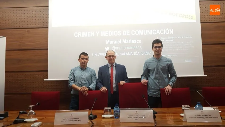 La tradicional fiesta del CODEX de la Facultad de Derecho ha puesto punto final a los actos académicos con la conferencia ?Crimen y medios de comunicación?, impartida por el periodista Manuel Marlasca. Acompañado del decano, Federico Carbajo, el periodista especializado en sucesos ha explicado la relación de los medios de comunicación con el mundo del crimen y de los delitos y su repercusión en todos los agentes implicados y ha dejado claro que nunca se ha arrepentido de elegir el periodismo de sucesos. ?Ahora mismo no haría otra cosa?.