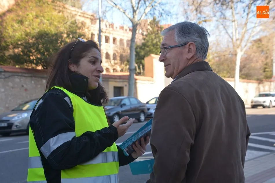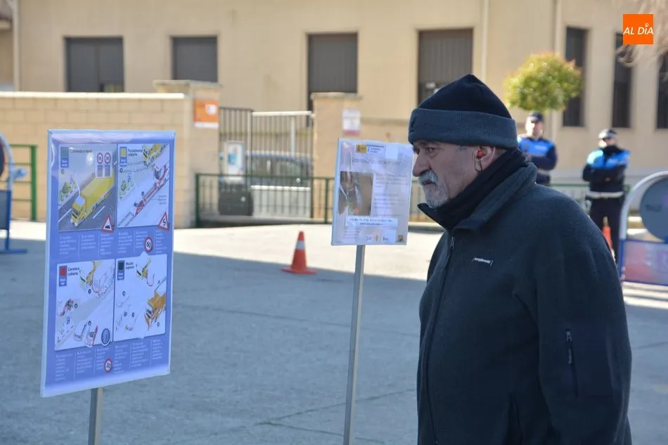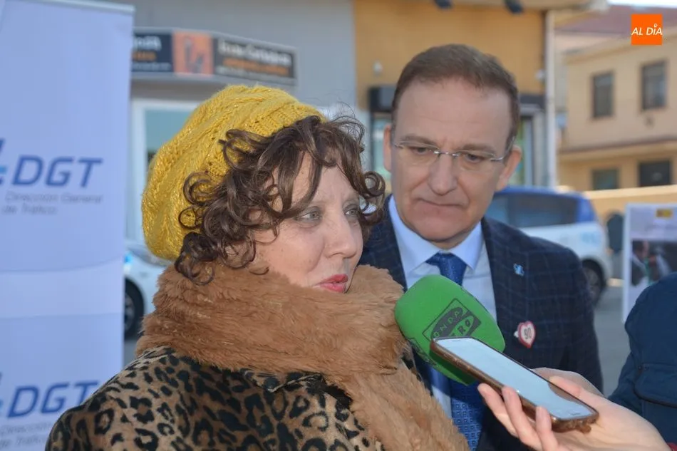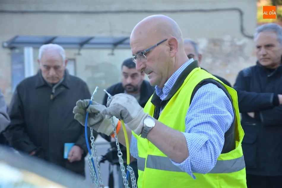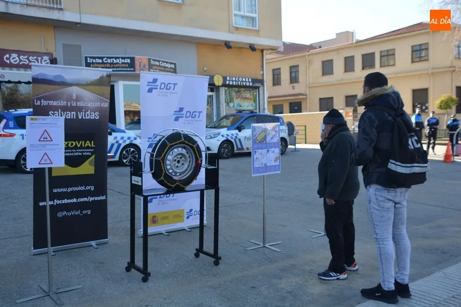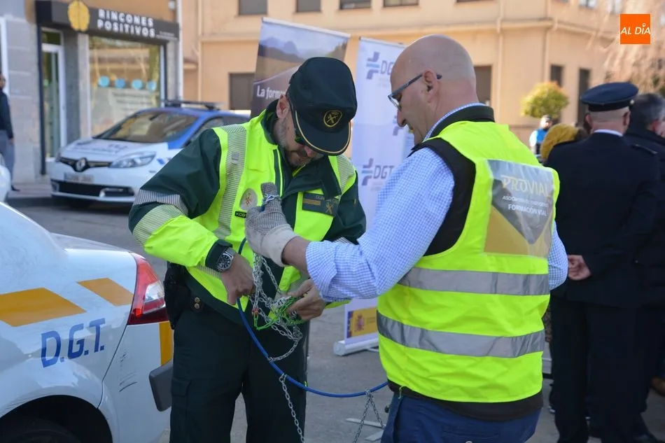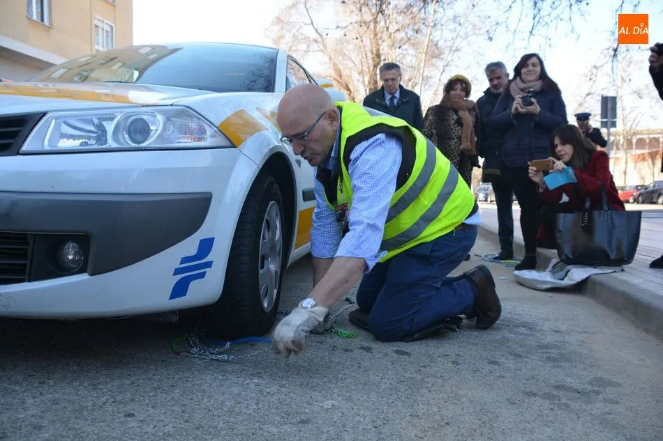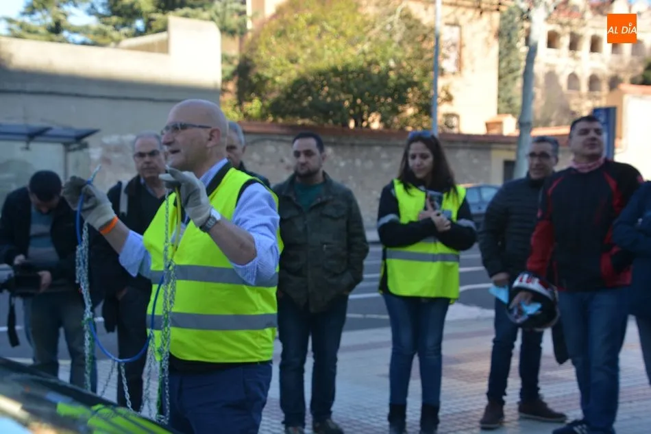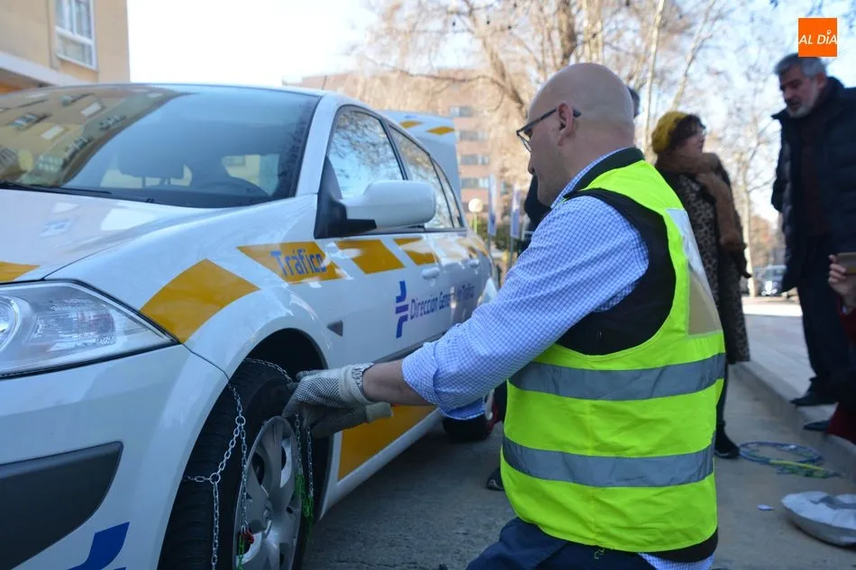 Un taller de la DGT explica a los conductores cómo colocar correctamente las cadenas  | Imagen 1Teniendo en cuenta que ocho de cada diez conductores no sabe poner correctamente las cadenas, la subdelegada del Gobierno en Salamanca, Encarnación Pérez, acompañada del concejal de Protección Ciudadana, Emilio Arroita, destacó la importancia de esta demostración gratuita para que los conductores sepan cómo actuar ante condiciones adversas en la carretera, con nieve, hielo, agua o viento.