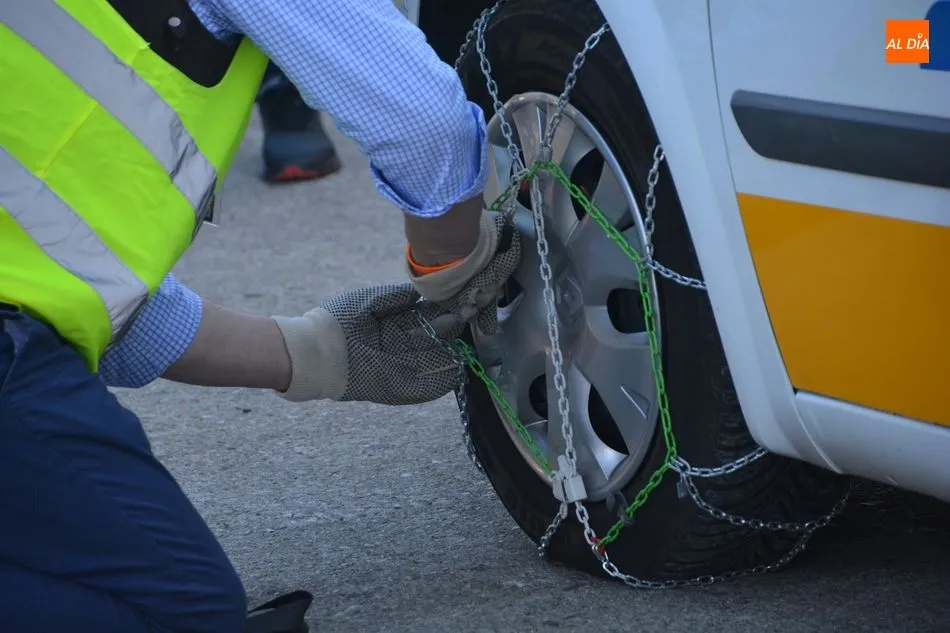 Un taller de la DGT explica a los conductores cómo colocar correctamente las cadenas