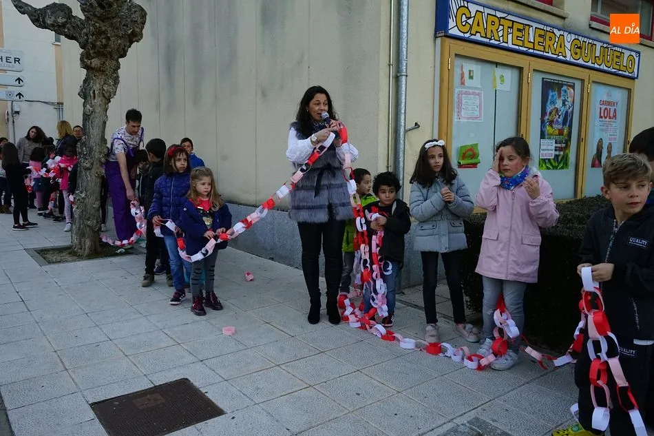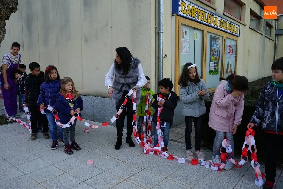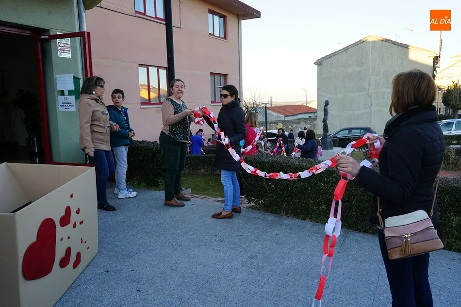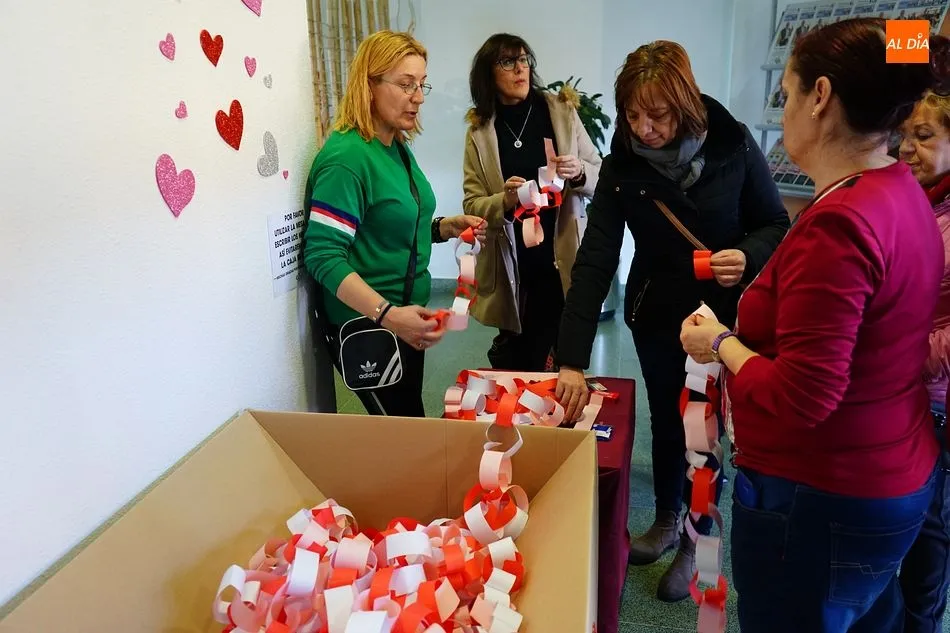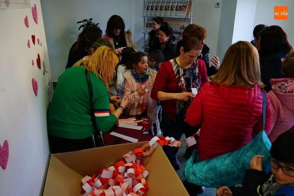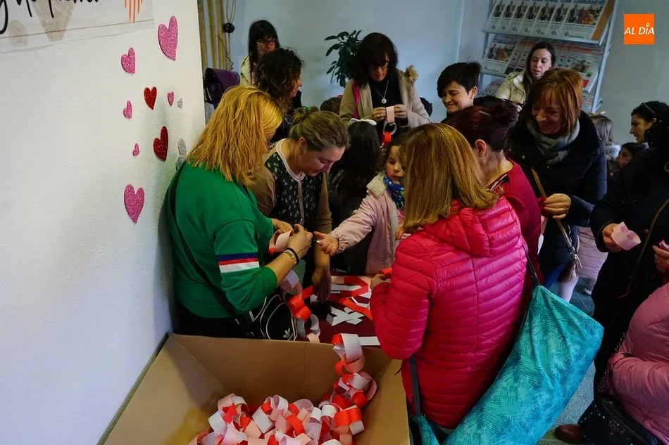 de Guijuelo. El objetivo era rodear el edificio con una cadena de corazones de aproximadamente un kilómetro de longitud. La cadena se elaboró en cartulina a lo largo de 10 días en el taller ?El reto de la amistad y el amor?, que se fue almacenando en una gran caja en el recibidor del centro cultural. Una divertida experiencia que sirvió para celebrar un día lleno de amor en el centro cultural de la villa.