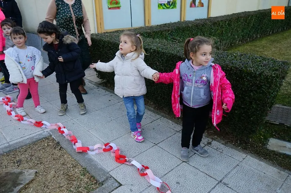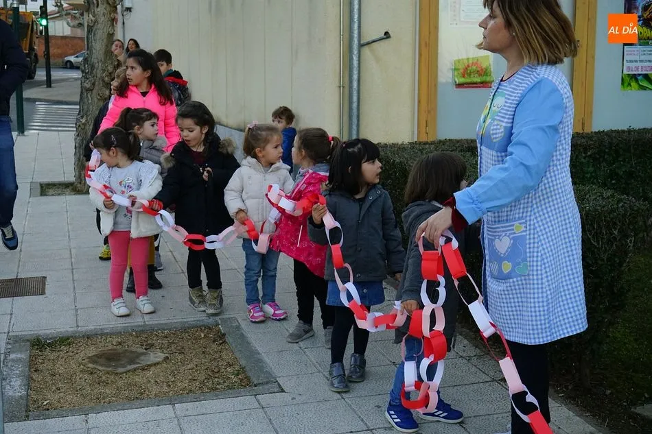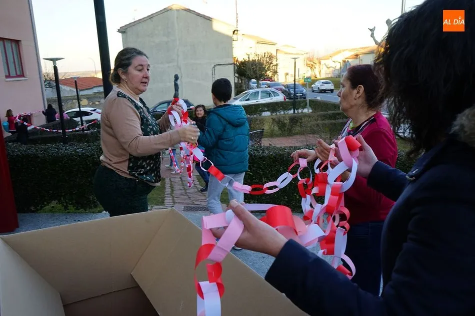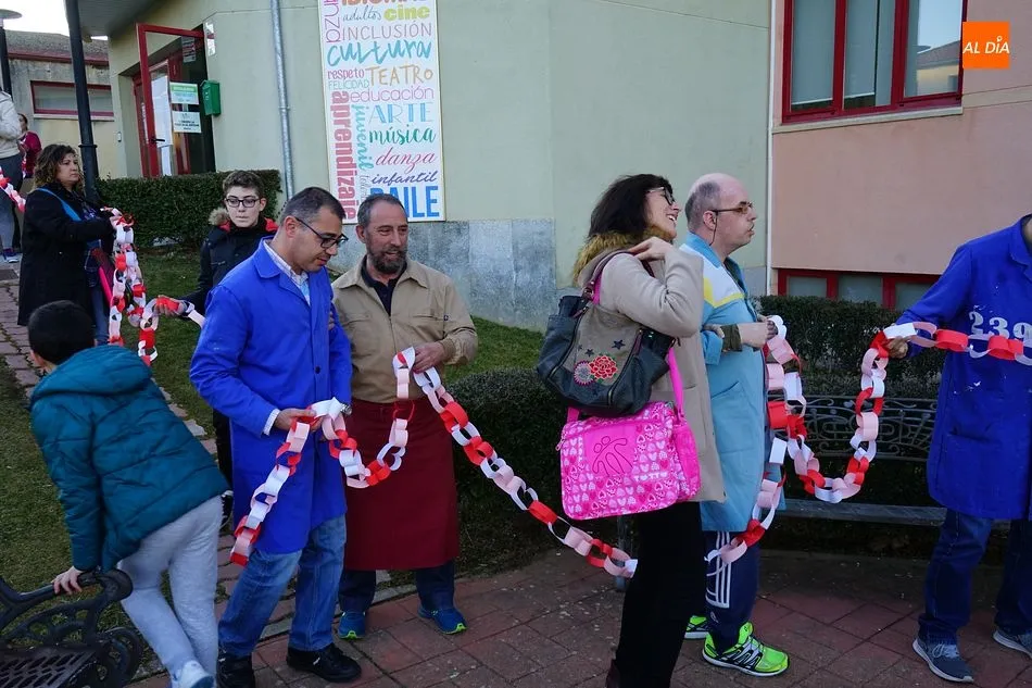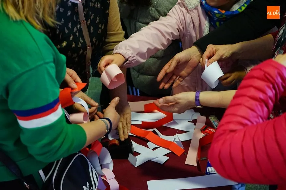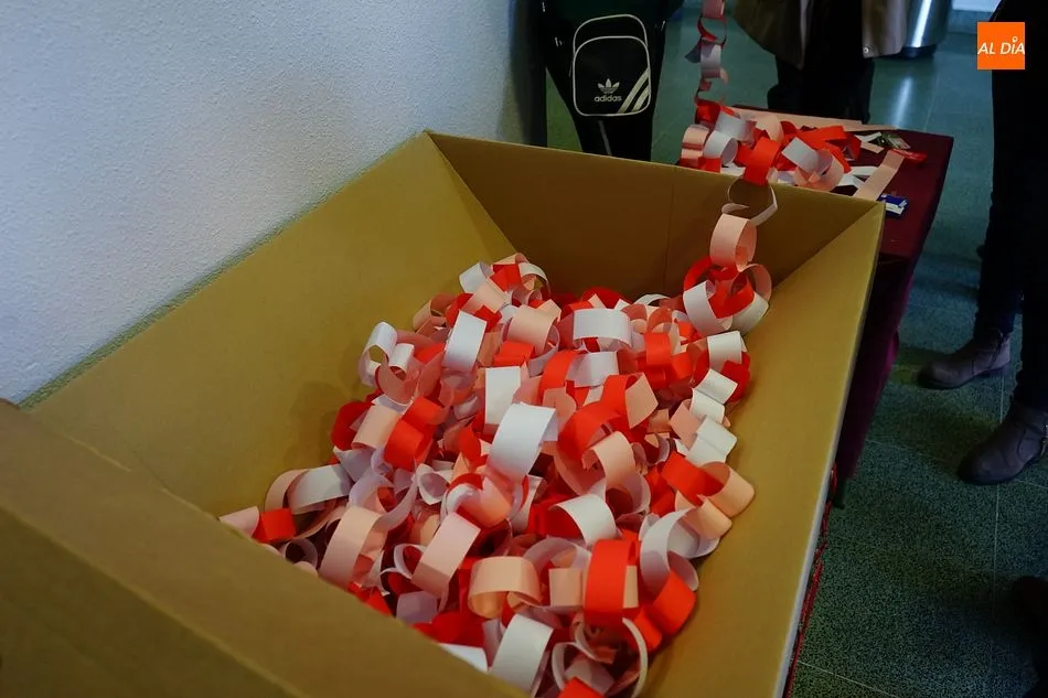 de Guijuelo. El objetivo era rodear el edificio con una cadena de corazones de aproximadamente un kilómetro de longitud. La cadena se elaboró en cartulina a lo largo de 10 días en el taller ?El reto de la amistad y el amor?, que se fue almacenando en una gran caja en el recibidor del centro cultural. Una divertida experiencia que sirvió para celebrar un día lleno de amor en el centro cultural de la villa.