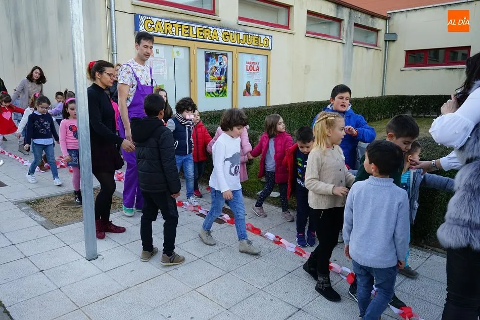 El centro cultural de Guijuelo ha celebrado San Valentín con una original propuesta titulada el ?Abrazo de amistad y amor?. La actividad comenzó en torno a las 18:00 horas con la participación de numerosos usuarios del centro, como los niños de la Ludoteca Ludoguay, los alumnos de psicomotrocidad, los de inglés, música y el colectivo de Mujeres Emprendedoras