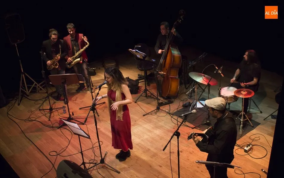 El Teatro de la Biblioteca Municipal Torrente Ballester ha sido escenario este jueves del concierto ofrecido por la banda salmantina Flamingo Swing que ha cautivado al público con versiones de siempre.