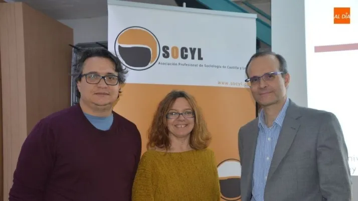 El director de la cátedra Martín Patino de la Universidad Comillas, Agustín Jesús Blanco Martín, y la profesora de Economía Aplicada de la Universidad Rey Juan Carlos, Rosa Santero Sánchez, han participado esta tarde en la presentación del ?Informe España 2018? en la sede de la Asociación Profesional de Sociología de Castilla y León (Socyl).