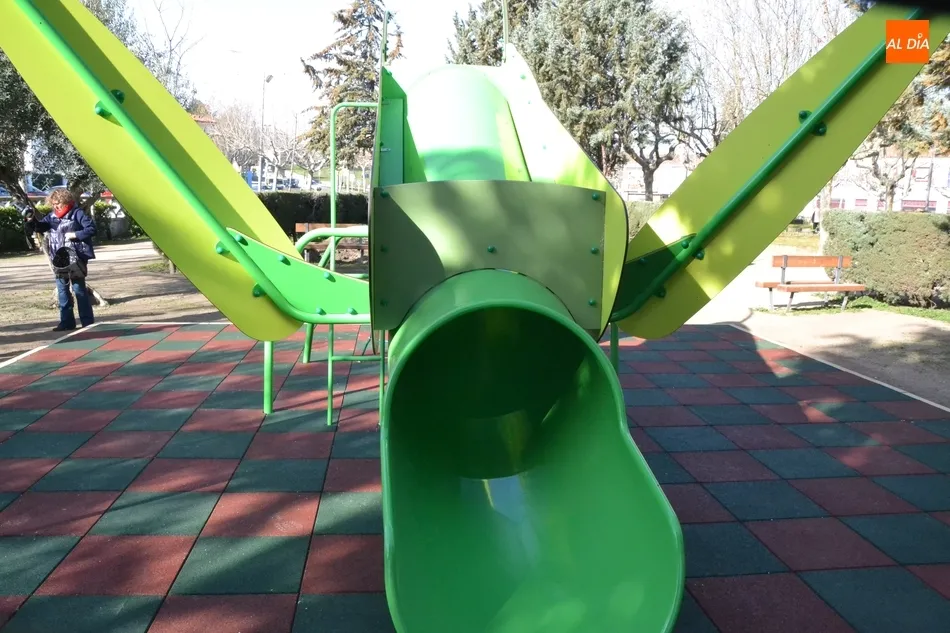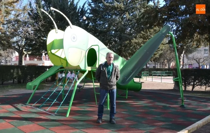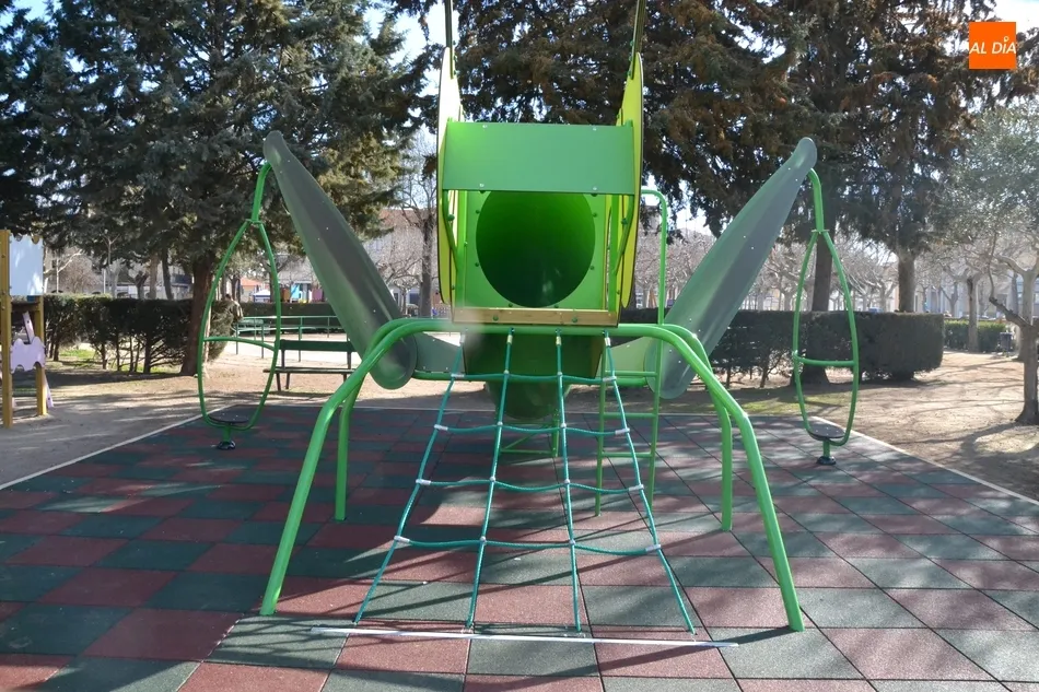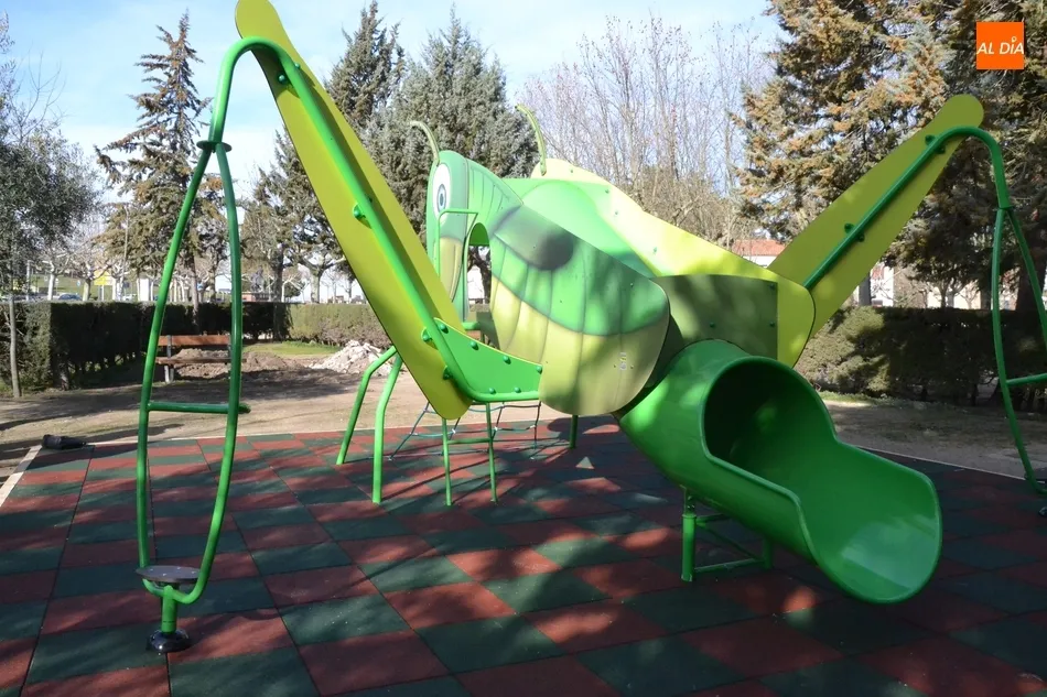 Todos los que hayan pasado en los últimos días junto al Parque de La Glorieta de Ciudad Rodrigo habrán podido observar que el emblemático Parque tiene un nuevo inquilino: un saltamontes gigante destinado a brindar desde este viernes a los niños mirobrigenses nuevas formas de entretenimiento.