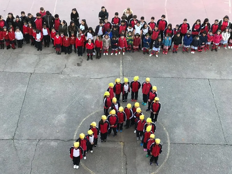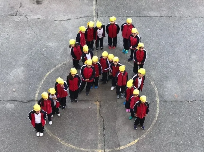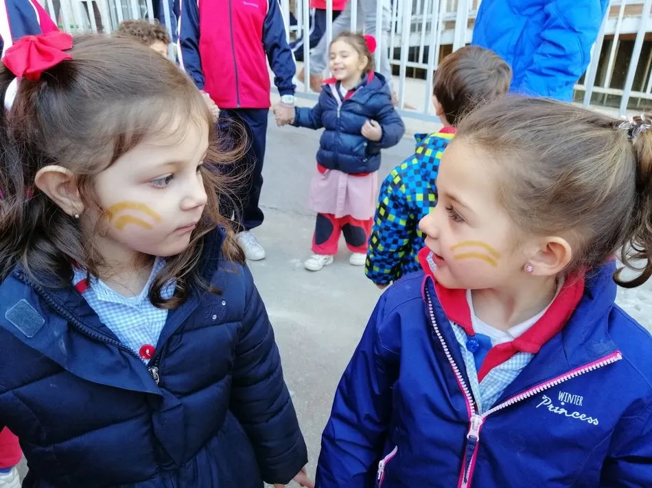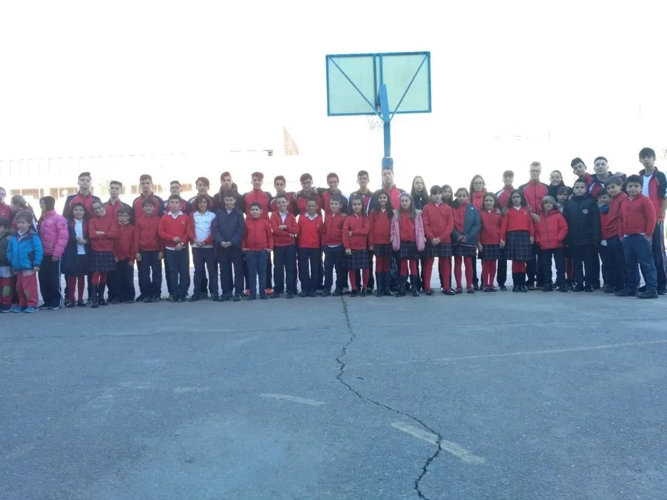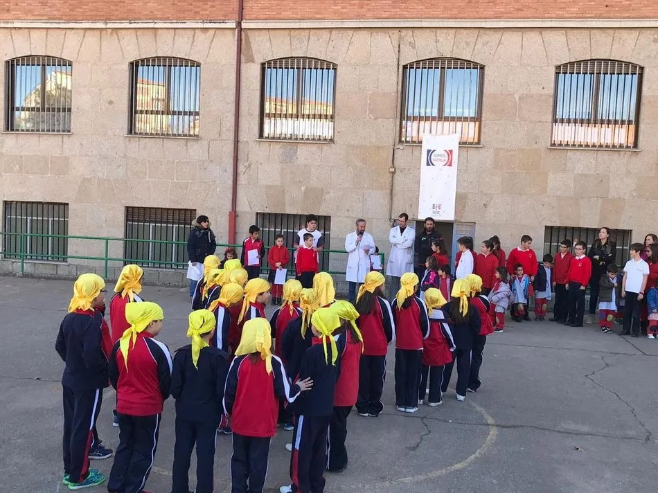 Todos los alumnos y profesores se han pintado unas rayas doradas en la cara para mostrar su apoyo en este día mientras escuchaban el manifiesto, a la vez que una pequeña representación de alumnos ataviados con pañuelos amarillos en sus cabezas formaban un lazo en el centro.