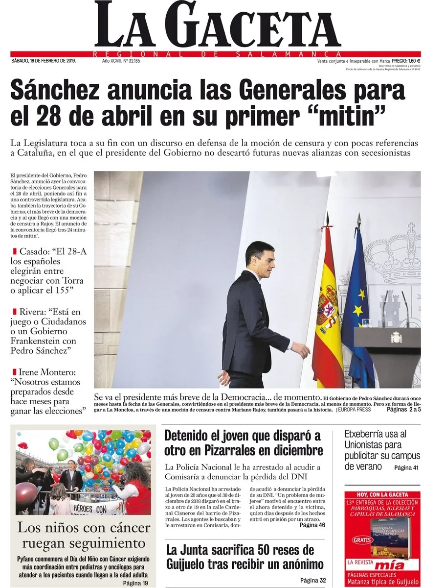 La prensa local destaca la convocatoria de elecciones general por parte de Pedro Sánchez para el 28 de abril