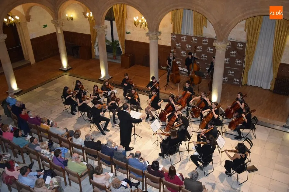 El Casino de Salamanca ha vuelto a acoger una actuación artística de primer nivel. En este caso, ha sido el concierto ofrecido por la Orquesta de Enseñanzas Profesionales del Conservatorio Tomás Luis de Victoria de Ávila, dirigida por Javier Gil. Esta agrupación, que se encuentra preparando su participación en el prestigioso Festival Musika-Música 2019 en Bilbao, ya ha visitado el palacio de Figueroa en años anteriores.