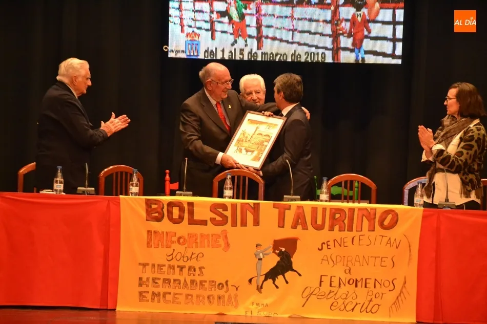La segunda parte del acto en el Teatro Nuevo fue la entrega por parte del Bolsín a Santiago Martín ?El Viti? del Premio por su Labor en la Tauromaquia, un premio ?joven? (lleva 3 ediciones en total) ?en entidad añeja?, según expresó el patriarca del Bolsín, Miguel Cid Cebrián.