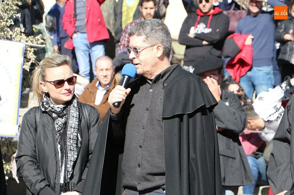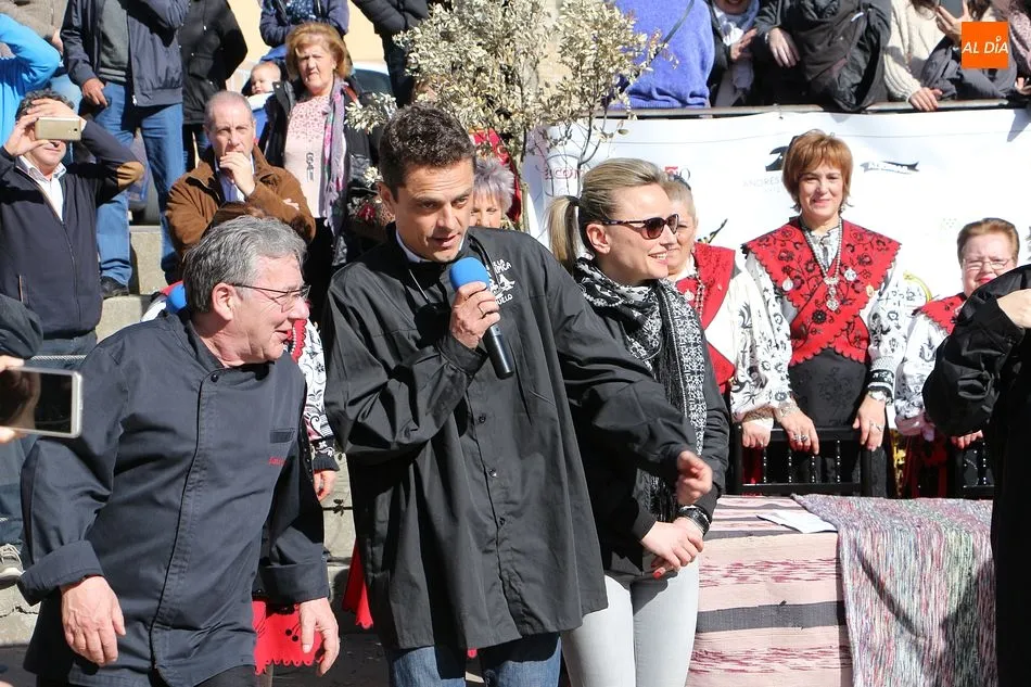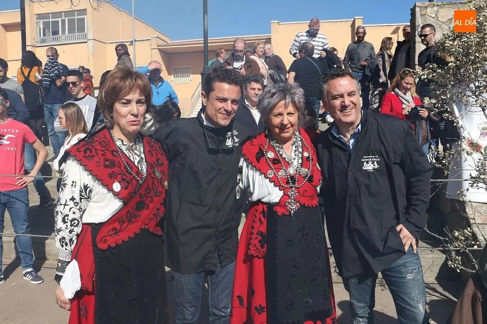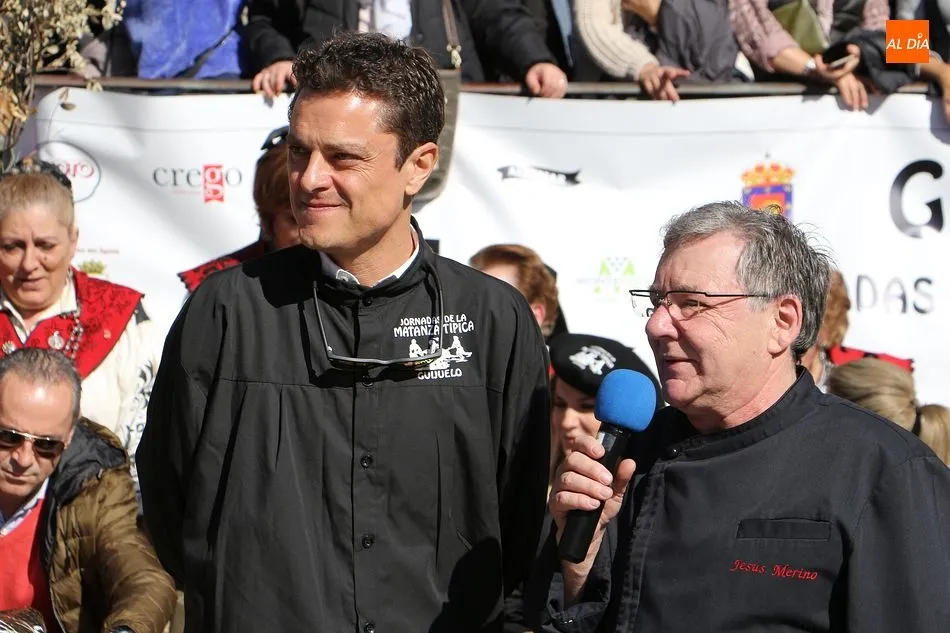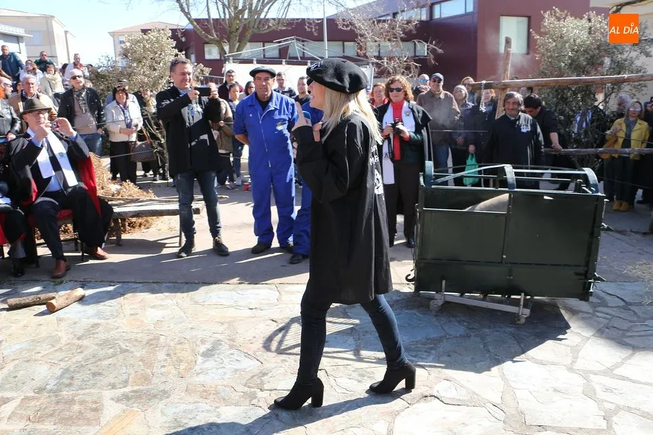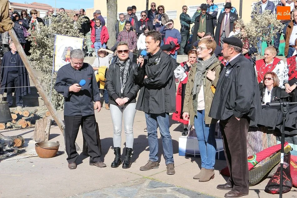 Jesús Merino, organizador del evento, estuvo acompañado las concejalas Sandra Méndez y Yolanda Alonso, además del habitual de la matanza, el radiofónico Carlos Santos. También estuvo el conocido hombre del tiempo, Roberto Brasero. El salmantino Javier Gallego, que mañana será protagonista en la fiesta del mondongo, actuó como maestro de ceremonias, dando paso a las matanceras de honor de la jornada. En primer lugar Araceli Zarzalejos, popular locutora de radio, fue quien vistió la camisa y la boina de matancera de honor. A continuación fue el turno de Sandra Golpe, presentadora de las noticias de Antena 3 la que fue investida matancera, y que a demás se atrevió a entrevistar al cerdo, justo antes del sacrificio.